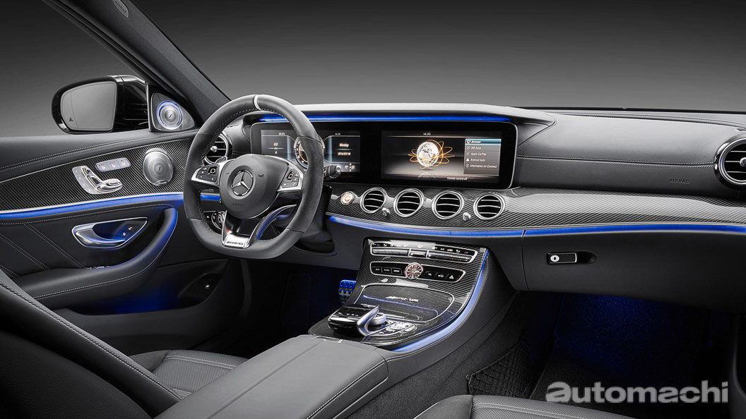 内装的设计风格方面,这款车型毕竟还是一款“家庭车”,因此和普通版本的 E Class 比起来好像没有差别,不过仔细看还是可以找到不同,例如运动化座椅,内建软件的不同,中控台的碳纤维饰板等等。根据个人试驾这款车的经验,虽然说这款车型是一款运动车型,但是其舒适性却得到了一定的保障,所以作为家庭车,它的表现实际上还是蛮合格的。