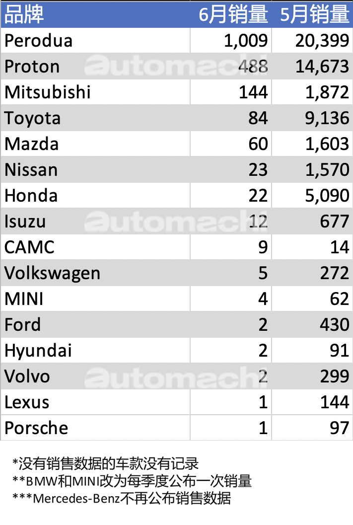 在6月销售数据只如此惨淡的原因,主要是因为行动管制令的关系,因此很多汽车工厂均无法开工,加上有关当局(例如陆路交通局)无法营运或者是只能有限度的营运,因此导致新车无法注册,这样一来汽车厂商,因为无法销售车辆导致代理商以及销售员的生计受到了很大的影响,事实上直到现在汽车展示厅已经不被允许营业,因此相信在7月的销售成绩并不会比现在好多少。