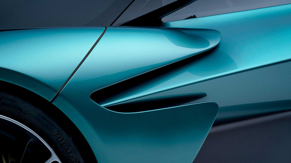 量产版 Valhalla 使用碳纤维单体车体架构打造而成,全车重量只有1,550 kg,而在外形上依旧大量保留了概念版的设计,包括宽大而扁平的车头造型设计搭配具备自动远近光灯功能的 LED 头灯组,而车身侧面也极具线条感,搭配大型的进气口设计,而宽大的侧裙除了带出极为强烈的视觉感以外,也是提供强大空气动力学性能的来源之一。