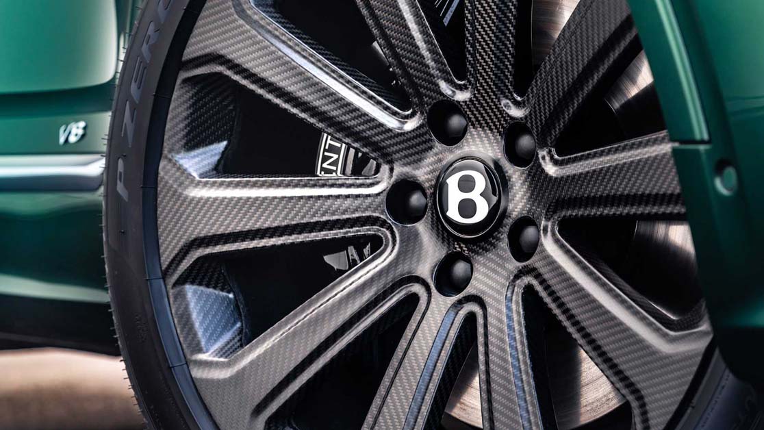 Bentley 之所以开发碳纤维轮圈是因为除了上述提到的好处之外,它在其他方面也有一定程度的帮助,例如说安全性,它并不会像一般材质或者是铝合金的轮圈那样在激烈撞击之后爆裂,而是因为其特殊的结构而在激烈撞击出现损坏后编织物会慢慢分裂,而不是整个轮圈变形,减少轮圈爆裂车辆失控的可能性。最重要的是因为轮圈的重量降低,因此轮胎和地面的磨损也会降低(每一个轮圈的重量对比之前降低了6公斤),进一步的增加了轮胎的耐用性而在操控方面因为碳纤维材质的刚性比起金属更高,因此在激烈驾驶不会出现扭曲的情况导致轮胎胎面不平整,所以轮胎的抓地力会更好,这样也能够提升车辆的操控表现。