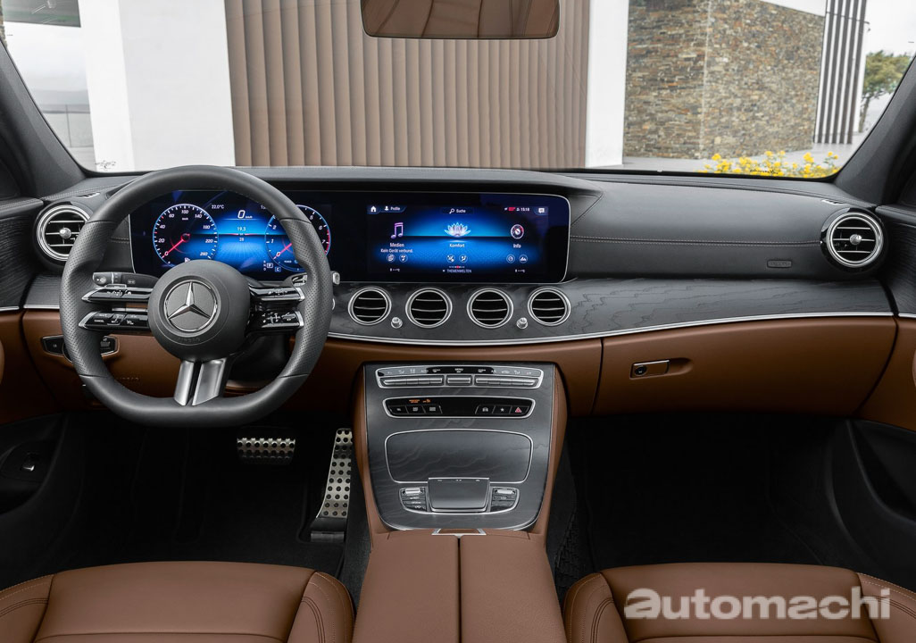 内装的设计风格相比起外观则是没有太大的改变,首先映入眼帘的就是全新的方向盘设计,这个方向盘的设计是向之前的 Mercedes-Benz 经典车款致敬。在一般的版本上内装拥有两个10.25寸的荧幕,其中一个为车载主机荧幕(升级了最新的 MBUX 系统),另外一个为数位化仪表,如果你觉得不够大你还可以选配12.3寸的大尺码荧幕,视觉效果会更佳,质感的呈现还是一如既往的出色,符合其 E-Segment 豪华车款的定位。而为了提升车辆的舒适性,这款车型也会标配主动式悬吊,这是一个值得点赞的进步。