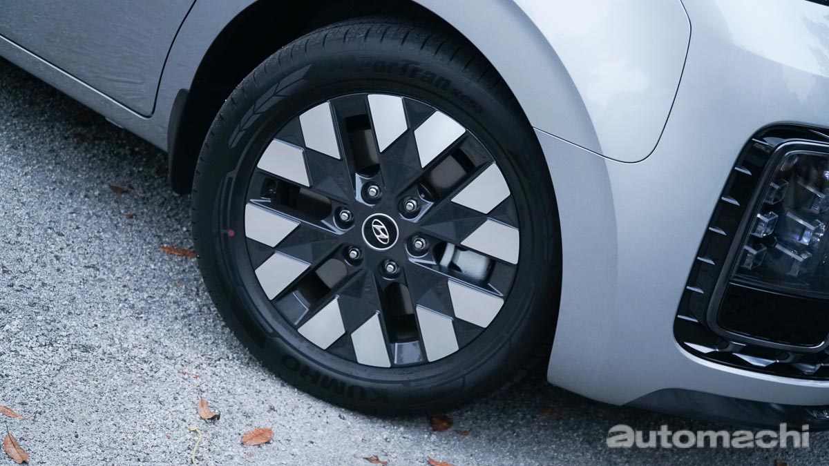 轮圈方面的设计,黄铜色镀铬的18寸铝制类钻石轮圈设计,添加了一丝豪华感,和车头的设计根本绝配,毫无违和感!刹车系统方面搭配了前后刹车盘的选择,前刹车盘尺寸为 18 寸,后刹车盘是 17 寸。其他部分就有车侧的镜子和车尾中间的 Hyundai Logo 以及 Staria 字眼使用了和轮圈一样的黄铜色搭配,尾灯也和前灯使用相同的 Parametric Pixel 设计。车身颜色则有 Cream White、Abyss Black Pearl、Shimmering Silver Metallic、Graphite Gray Metalic、Olivine Gray Metallic、Gaia Brown Pearl 和Moonlight Blue Pearl 这几种选择。