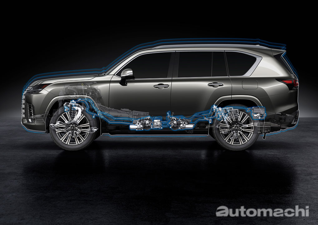 引擎的部分,全新的 LX 还配备了效能强劲的3.5L V6 双涡轮增压引擎,最大马力表现为415 PS,峰值扭力650 Nm,匹配的是10速的自排变速箱,并且采用了电子控制制动器(ECB)和电动助力转向系统(EPS),以确保驾驶者能够在公路和越野中充分享受 Lexus 的独特驾驶感受。而因为采用了全新的动力系统,因此和之前的车款相比新一代的 LX 在碳排放上减少了约 20%。