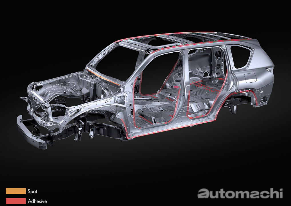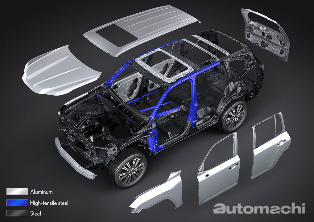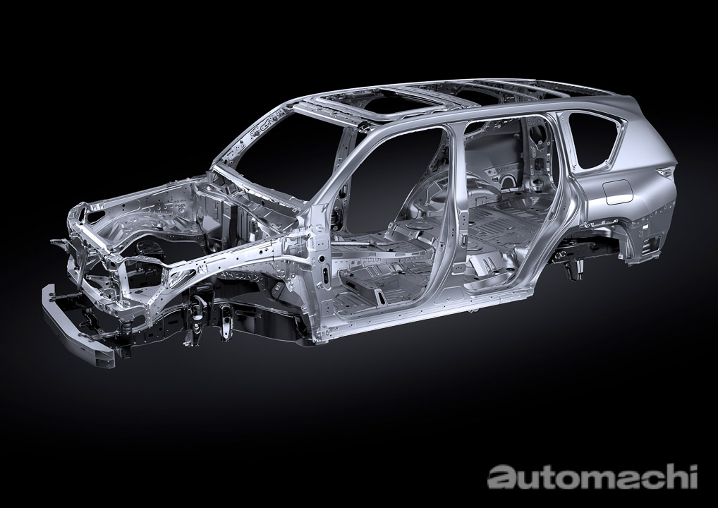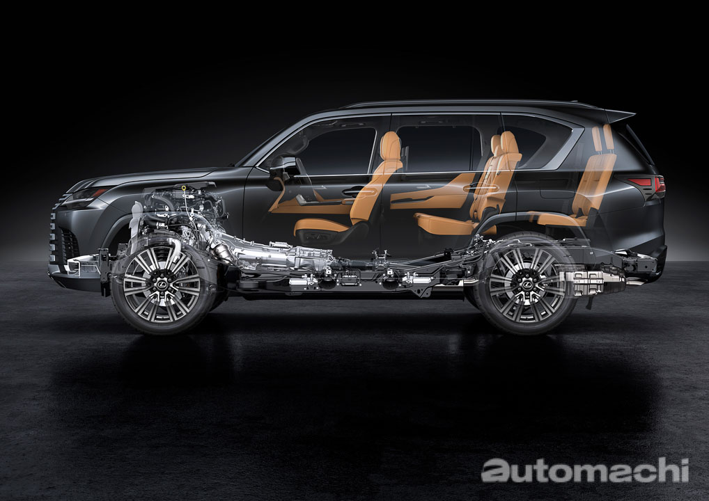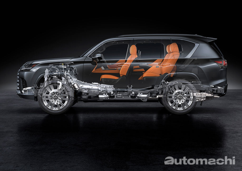 在新一代的车款上, LX 依然坚持着为车辆乘员提供卓越的舒适度。全新的 GA-F 平台在保持传统的车身框架结构以确保可靠性、耐用性和驾驶性能的同时,还因为采用了大量的铝材质,高刚性材质以及全新的镭射焊接技术等等物料来实现高强度的车身结构,并且成功减重了约200公斤,而值得一提的是全新的 LX600 采用的是全铝制车顶,这也是 Lexus 品牌中第一款采用铝制车顶的新车。