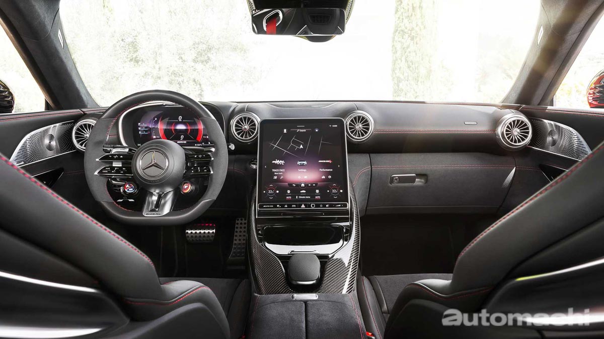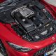内饰的部分,除了具有代表性的圆形冷气出风口,它还搭载了可调节式 MBUX 11.9 寸的触摸屏, 12.3 寸的全数字仪表盘(配有 HUD 抬头显示),让人感到科技感十足!多功能方向盘、可选配电子调节 AMG 皮革跑车座椅、Burmester 高级音响、红色缝线的内装设计,还有些许碳纤维内饰,让驾驶者能够坐得舒适的同时享受着 AMG 性能所带来的加速感,让驾驶乐趣提高不少!