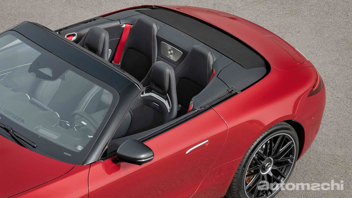 车顶的部分则是具备了能在 15 秒内完成折叠的绒布车顶,也就是所谓的 soft top。由于少了一般的车顶,重量方面少了 2 1kg,而车身也因为换了悬挂系统变得更低,让操控性上加分不少! AMG 专属的刹车卡钳和刹车盘,让整体操控性部分加分不少!如果你觉得不够帅气,你还可以加装 AMG 官方运动套件,其中就包括了碳纤维的电子可调节扰流板、更厚实的后扩散器等等,让外观看起来更帅气!