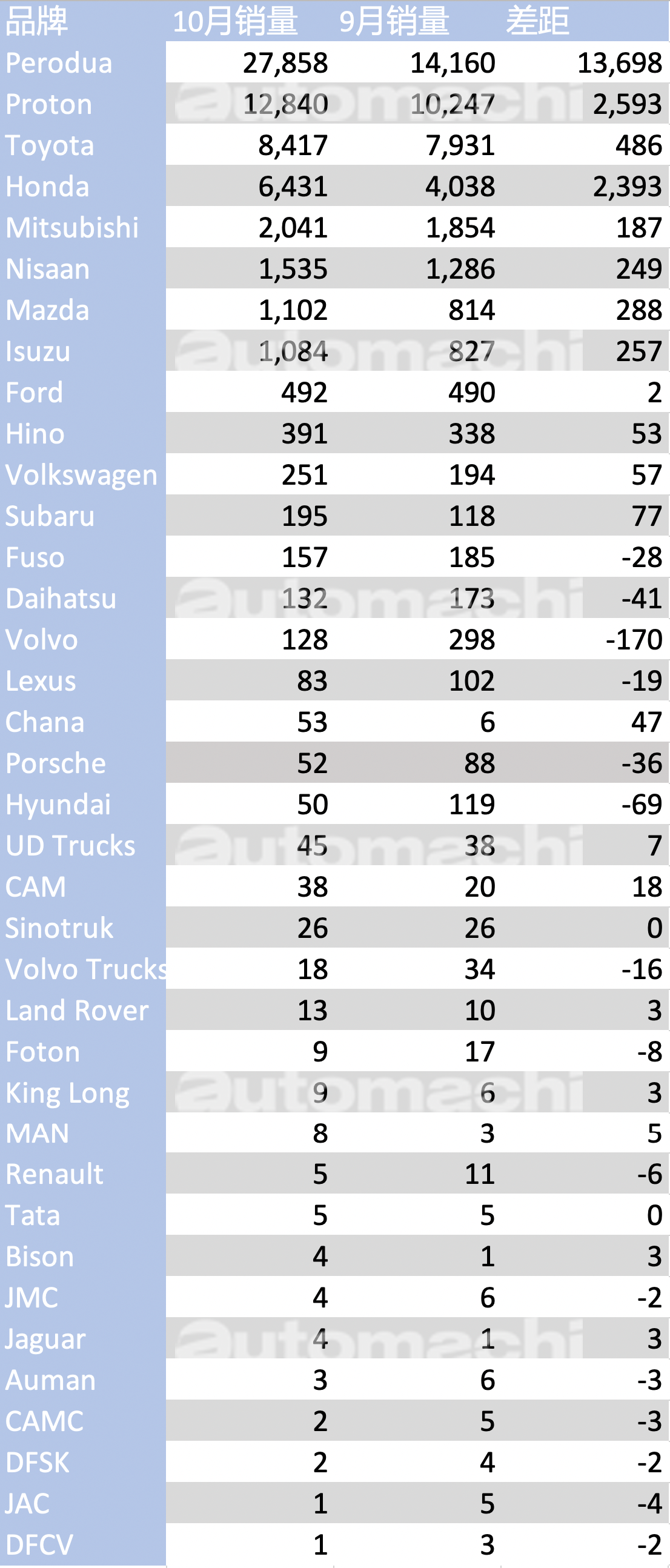 2021年10月汽车销量: Perodua 单月销量创下我国销售新纪录!