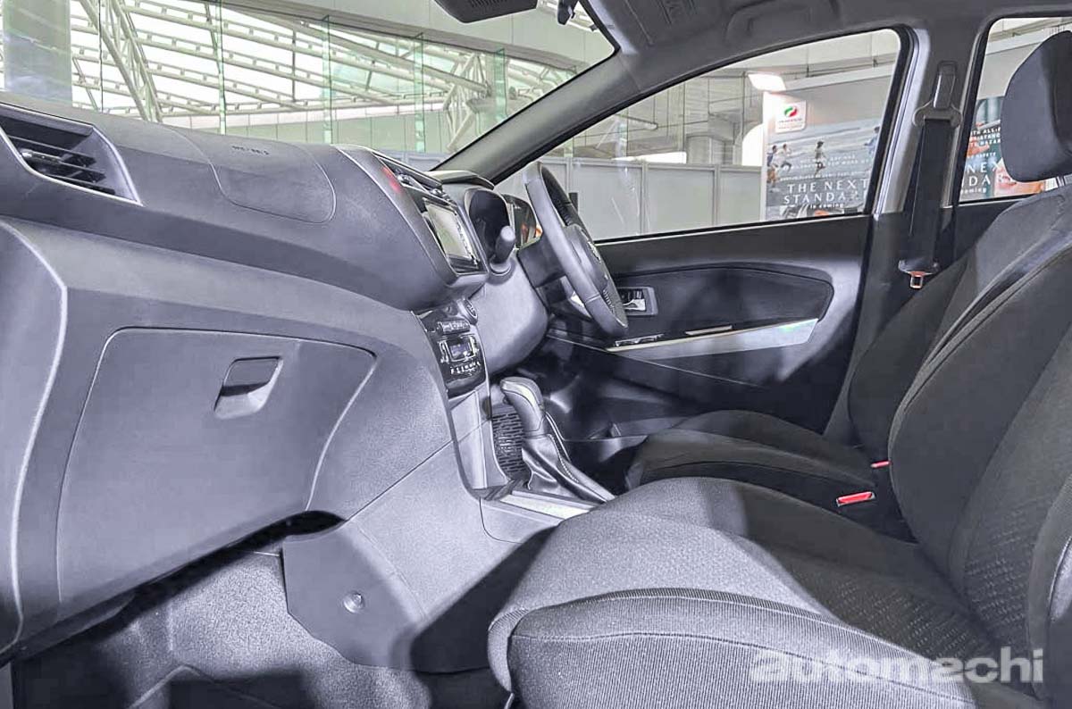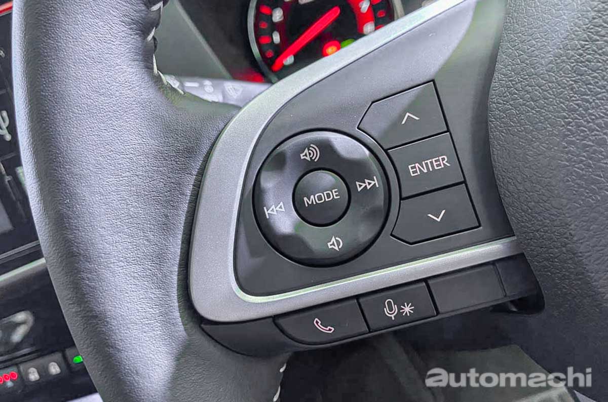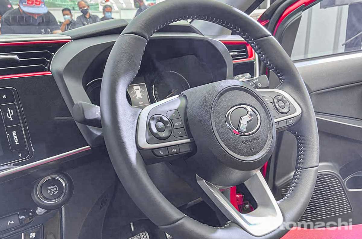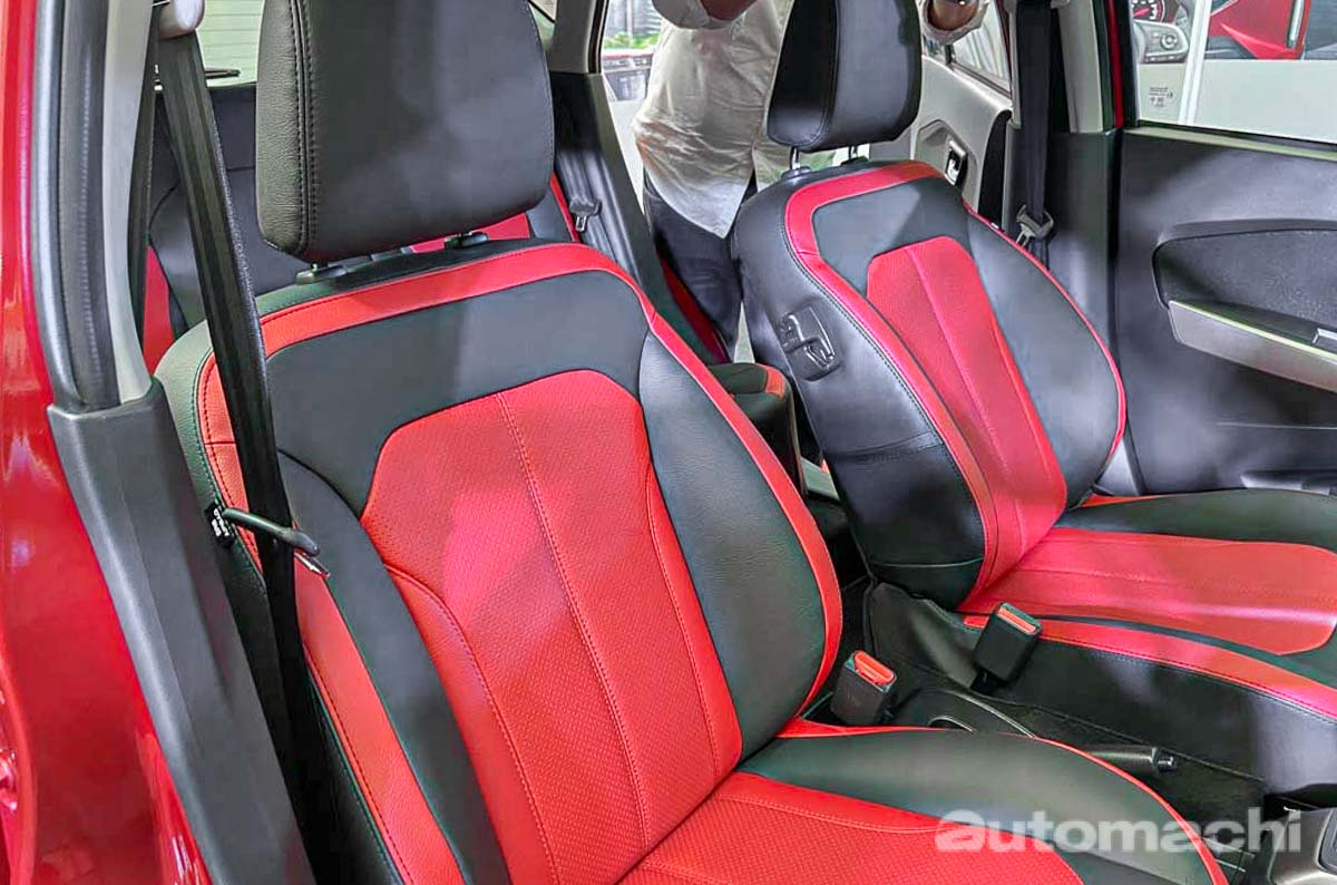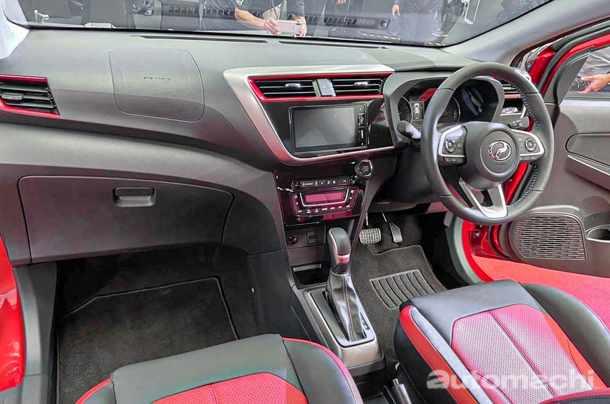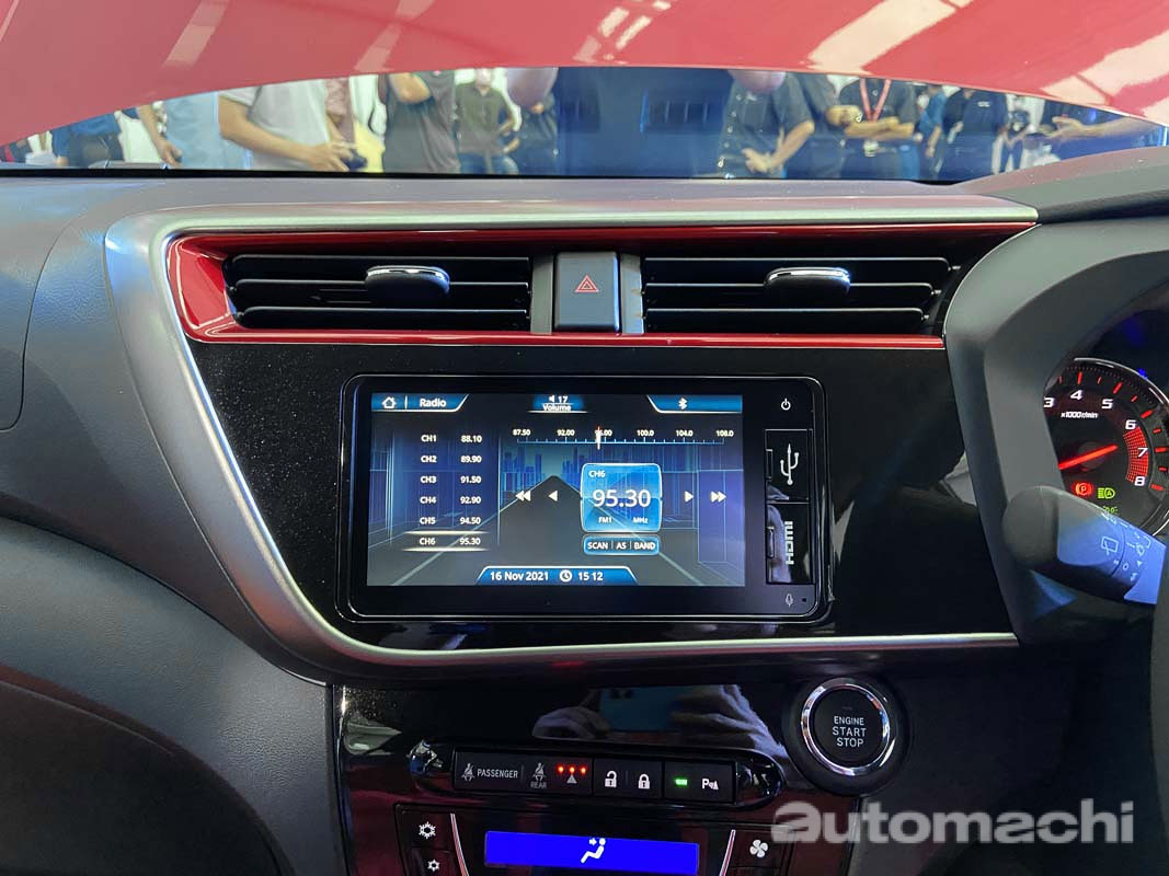 配色方面,也是有部分的改进,例如说冷气出风口从原本的镀铬材质变成了红色(不过普通版本依然是银色),所以在白天驾驶的时候反光情况会有所好转,顶级版的座椅也是使用黑色+红色的皮革作为搭配,其余的版本均为黑色的绒布。这就是内装的主要差异了!传说中的中央扶手也没有出现在小改款 Myvi 上面。