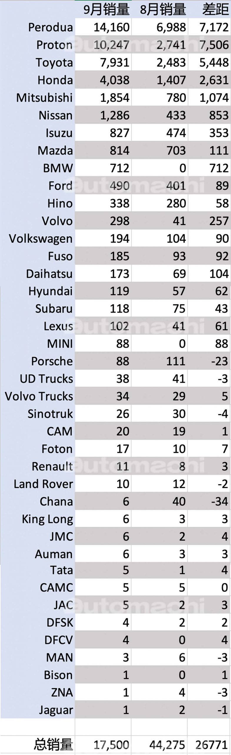 2021年9月汽车销量: Perodua 车款大卖稳占销售榜第一!
