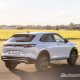 至于车尾也用了不一样的设计,虽然和全球车型一样是保留流线型的车尾线条,但是美规车型看起来会比较圆润。尾灯方面摒弃了贯穿式的 3D 尾灯,而是更为流畅圆润的尾灯,整体看起来尾部的线条会和谐不少。而为了展现更多的户外越野风格,前后保险杠和全车包围都采用了黑色的塑料材质。