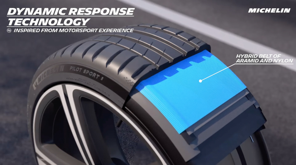 首先是 Dynamic Response Technology,新轮胎采用了 Aramid Fiber 和 Nylon 的混合材质打造,使得它可以在激烈驾驶时候,轮胎不会因为高温而变质或降低轮胎的性能,能够为驾驶者提供更为稳定的轮胎质量同时有着更好的操控表现。
