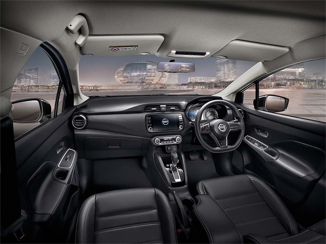 内饰方面,小改款的 Almera 全系标配 8 寸支援 Android Auto 和 Apple CarPlay 的 Nissan Connect 中控触屏主机,并且座椅用上了 Quole Modure 的皮革,能够有效减少车子停放在户外时座椅上面停留的热量,尽量保证了乘车人员的舒适性,同时门板处也会加上镀铬和碳钎维贴纸装饰,另外在 V 以上的车型也会标配 6 个安全气囊,而最顶级的 VL Sporttech 车型则会有钢琴烤漆搭配深灰色的内饰设计,整个内饰颜值提升不少。