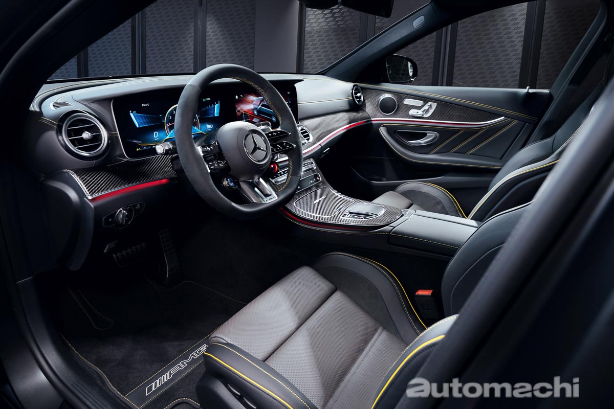 而这款车也拥有 AMG Night Package ,包括了车顶、车侧左右后视镜、前叶子板、腰线、AMG的后侧裙以及排气管都采用了钢琴黑的材质打造,另外全车的轮圈、空力套件都是经过了空气力学的设计,让车辆可以拥有更为犀利的加速表现。最后就是原厂考量到车主购买这款车主要是出于收藏的用途,所以原厂也提供了 AMG Indoor Car Cover,上面印有“AMG E 63 S FINAL EDITION”字样,让你好好珍藏你的爱车。