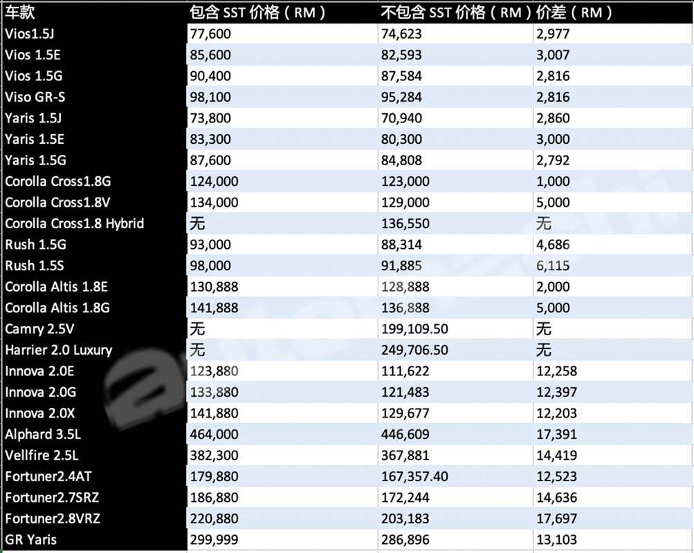 早前 UMW Toyota 已经宣布了旗下的新车恢复 SST 之后的价格,而我们发现到 Toyota Corolla Altis 的价格对比之前上涨了不少,虽然原厂没有公布涨价原因,但是这应该是原料涨价+马币贬值的影响,现在新车的价格从RM 130,888起跳!