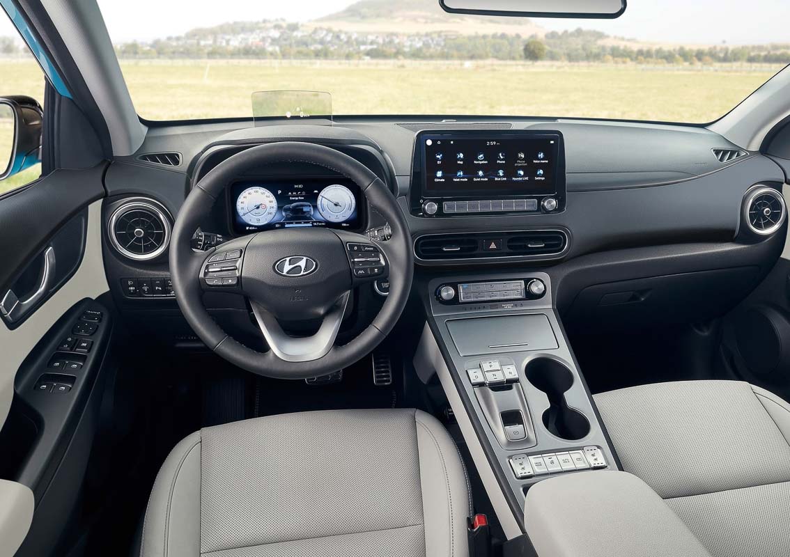 至于内饰,也和内燃机版本类似,不过原厂也有做出一些小改动,如把挡把换成按键式换挡,同时将之前挡把位置换成储物空间,让内饰看起来更为简洁。另外,这一次的 Kona EV 全系标配了皮革座椅,10.25 寸的全液晶仪表和 8 寸带无线 Android Auto 和 Apple CarPlay 的触屏主机。