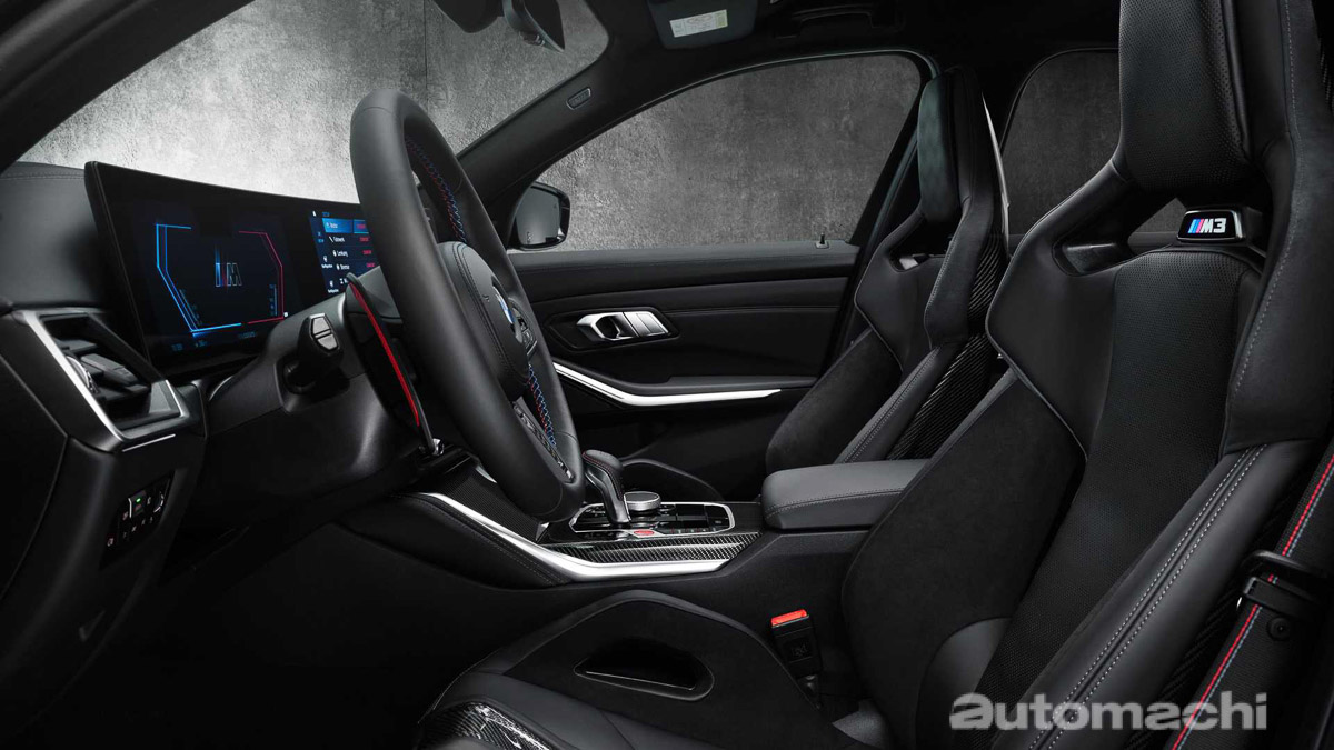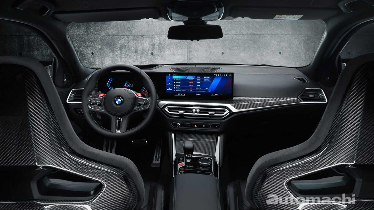 内装的部分,由于是新发布的车型因此 M3 Touring 采用了全新的双曲面联屏设计,其中中央的触屏主机尺寸为14.9,就和 iX 一样,同样的也搭载了 iDrive 8.0 系统。在座椅的部分新车同样的采用了充满战斗格调的赛车桶椅,具备了绝佳的包袱性,除此之外内饰的部分也拥有大量的碳纤维材质,给你满满的视觉效果。