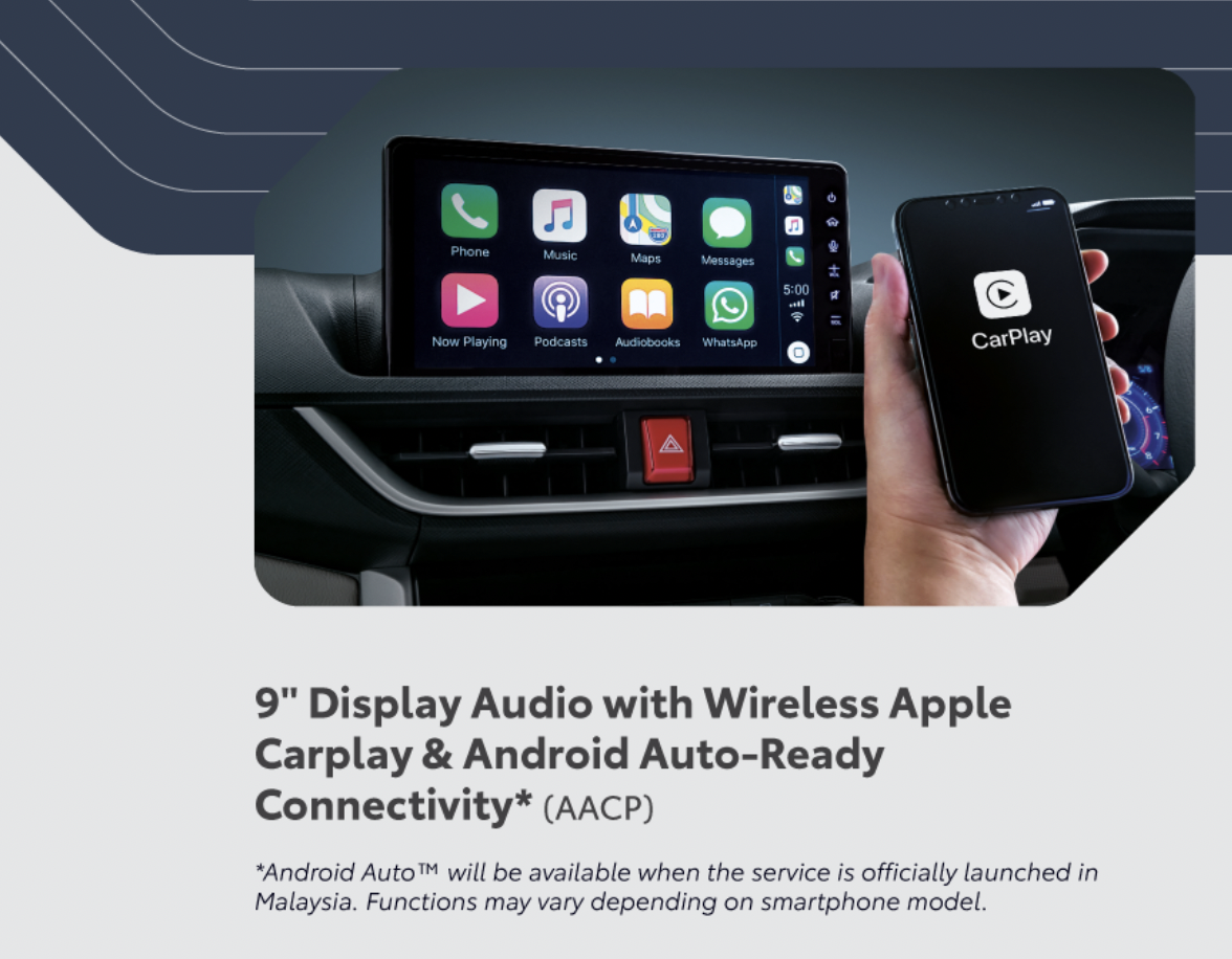 如果说我国 Veloz 的配置是目前已经上市的国家最强也不为过,因为这款车配备的 Toyota Safety Sense 是具备了 ACC 主动式定速巡航功能,这个版本在印尼的官网上是没有记载的,另外我国的 Veloz 也具备了无线 Apple Carplay 功能,这个功能可以让你挣脱数据线的束缚,也是时下流行的功能之一!