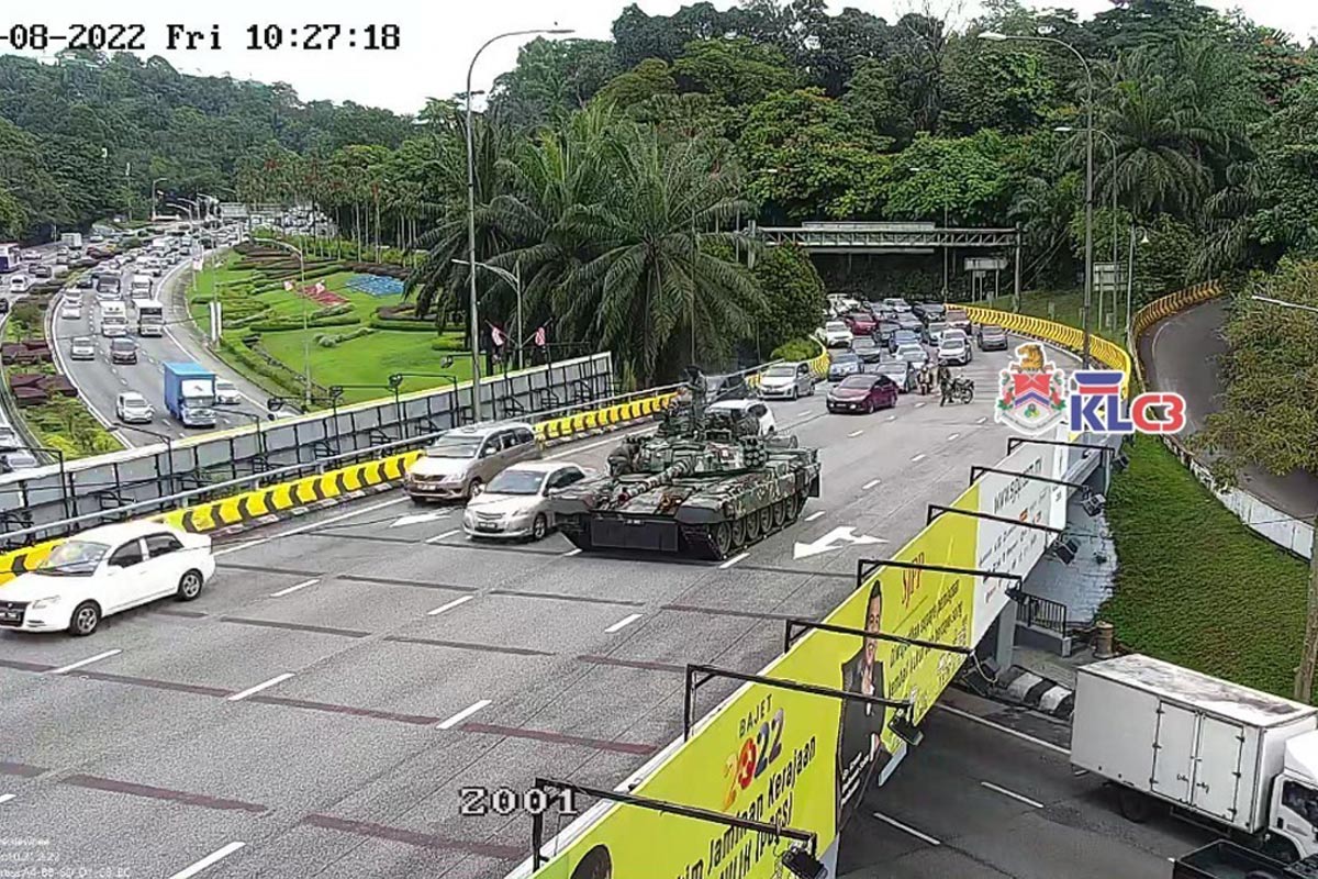 隶属于 Angkatan Tentera Malaysia 的坦克坏在市中心,导致交通堵塞!