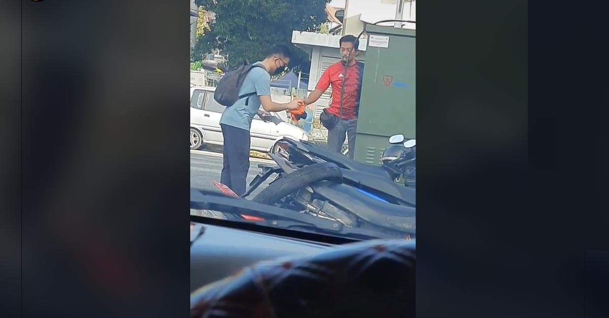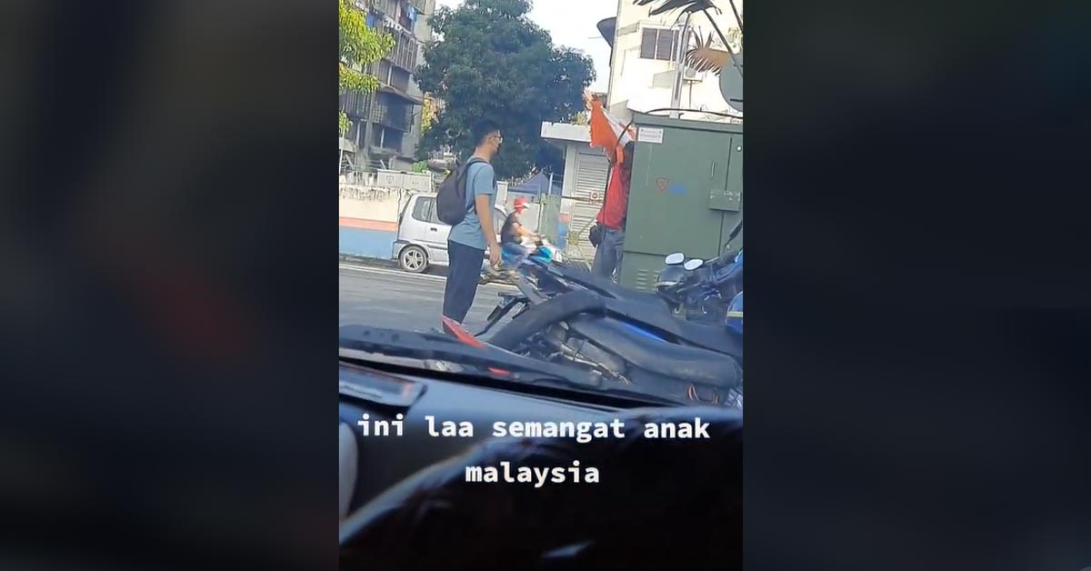 近日在社交媒体上流传一则影片,视频拍摄的地点似乎是在某个电子考车中心外面,视频里一名华裔男子穿着没有领的蓝色上衣搭配一件黑色长裤,就因为没有穿着有领的衣服而不被允许进入考场,而当他正在外面一筹莫展的时候,一名在路边的巫裔男子随即很 Steady 地脱下自己的橘色有领上衣,并仔细曡好后再交给华男让他成功进入考场考试,而这暖心的一幕就刚好被车子停在一旁的拍摄者拍到。