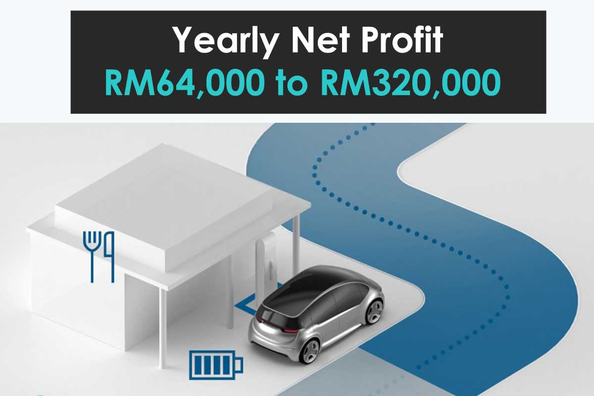 不过提供充电设施并没有什么亮点,根据官网的介绍,他们还提供了类似于加盟计划的充电服务,也就是你和他们一起设立充电站,只要有人使用你就能从中赚取一点利润,根据介绍每年能净赚高达 RM 64,000 – RM 320,000 的丰厚利润。