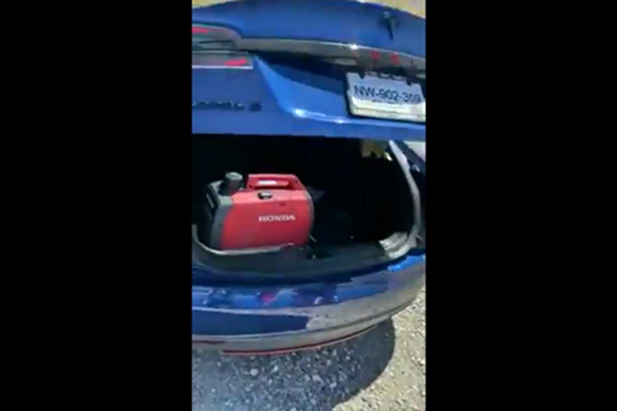 那车主心向他们解释,其实他并不是直接将汽油倒入特斯拉内,而是要倒入他放在车内的一台 Honda 汽油发电机,通过发电机来为这辆车子的电池组进行充电,而这聪明的想法,更是直接惊艳了刚巧遇过的众人。
