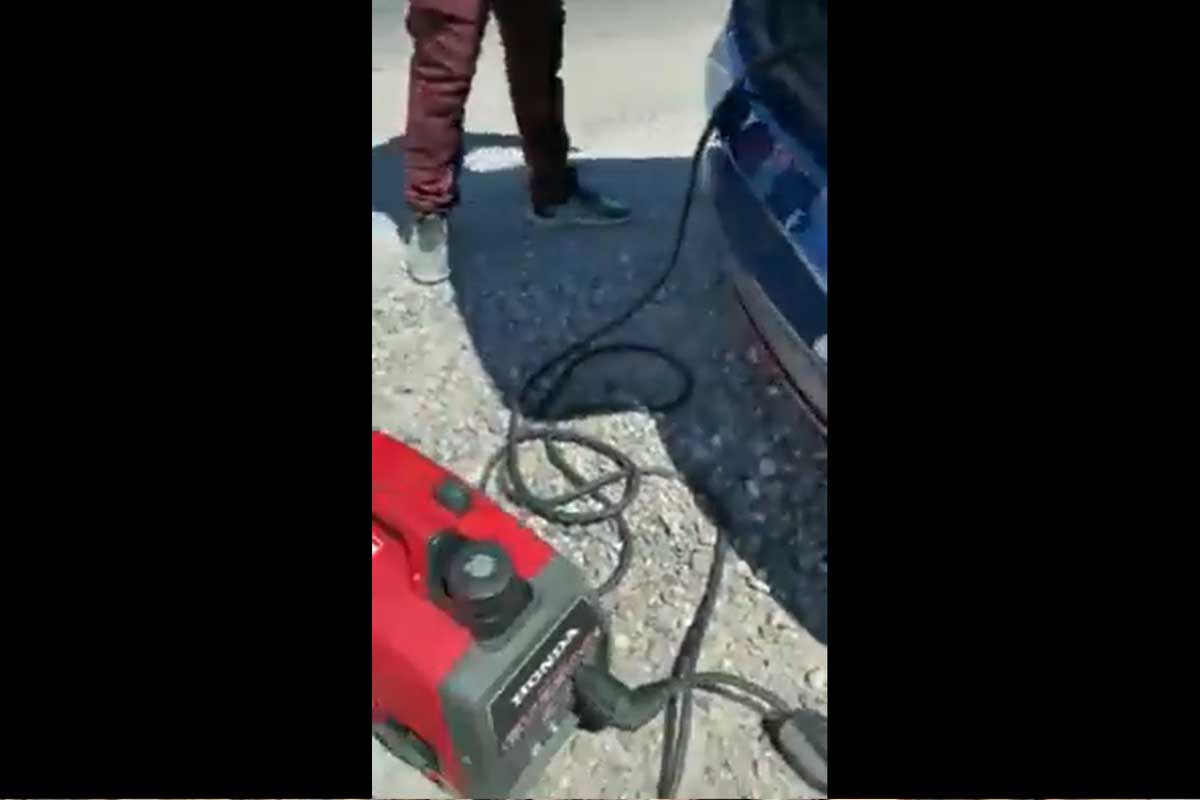 那特斯拉车主也很热心,看到他们的好奇心,直接就向他们展示解说他的操作原理,他先为汽油发电机加油,启动它后再将它连接至充电线上开始充电,而影片的最后,显示了这辆车是有在进行充电的,也证明了车主的理念是可行的。