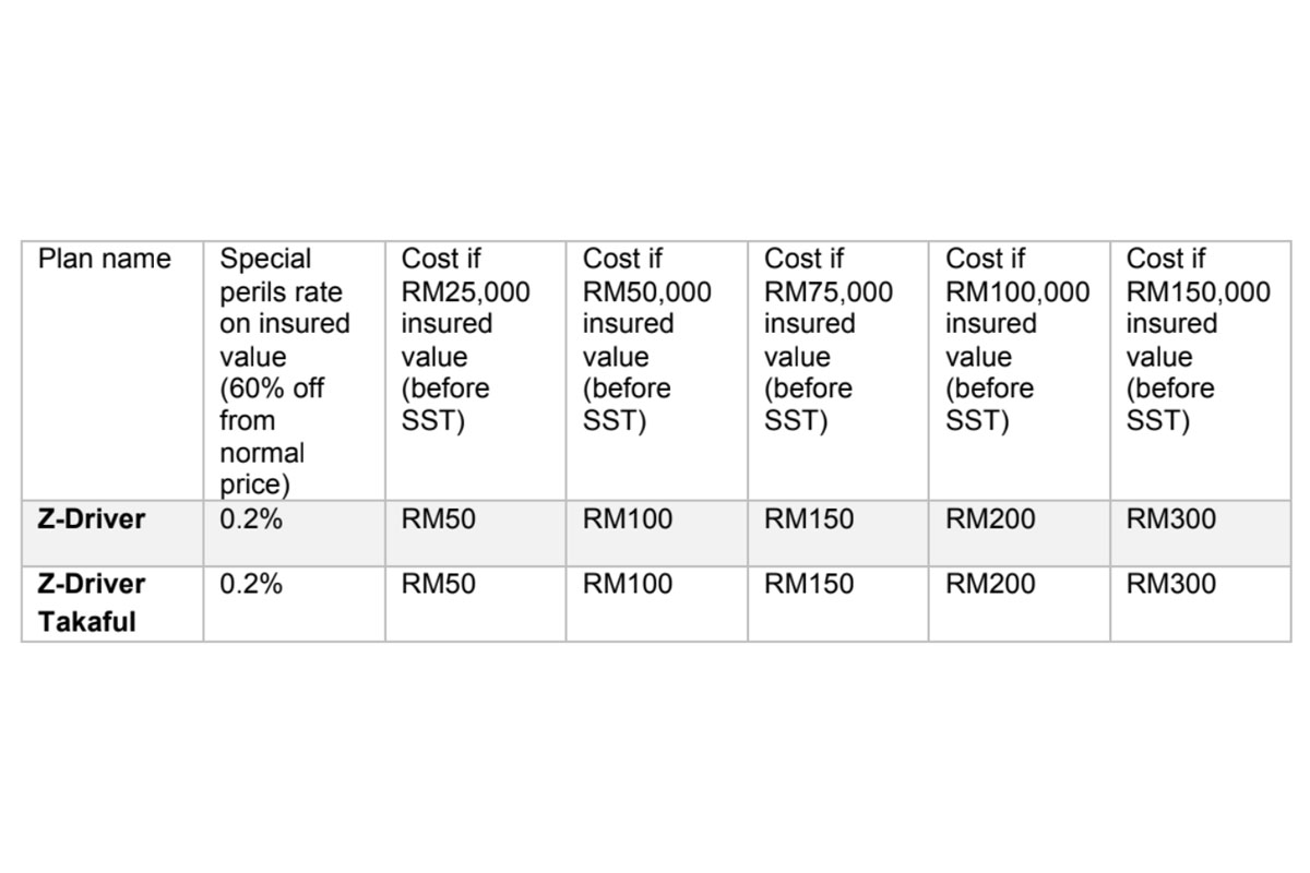 这个特别的险种可以让车主在需要时添购,它可以防止因像是水灾等自然灾害所造成的损失或损坏,如果你有意加购,可以参考一下的列表来看下详细的价格: