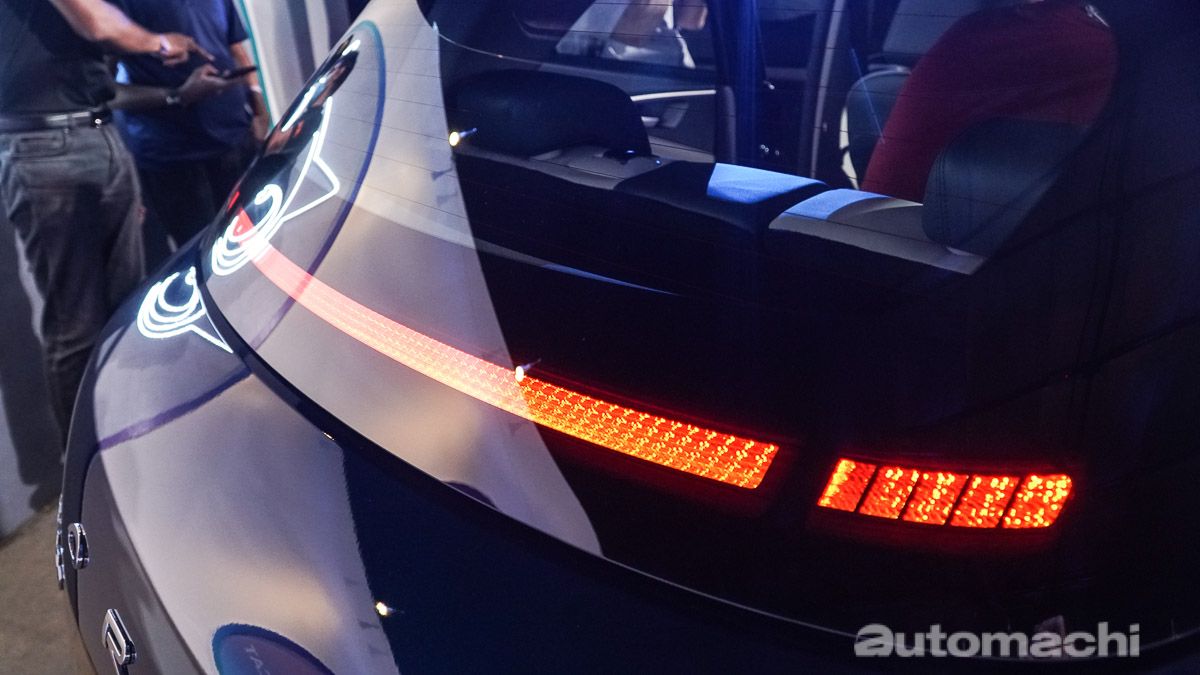 尾灯的部分,这款车的尾灯融合在后挡风玻璃上,虽然第一次看到这个设计会有点不习惯,但是不能否认这有种画龙点睛的感觉。虽然在视觉效果来说这款车并不大,但是其车身尺码为4,235 mm X 1,825 mm X 1,596 mm,轴距2,650 mm,这个轴距不仅仅是逼近了C-segment的尺寸,而且也保证了好猫的空间实用性,所以大家不需要太担心空间表现。