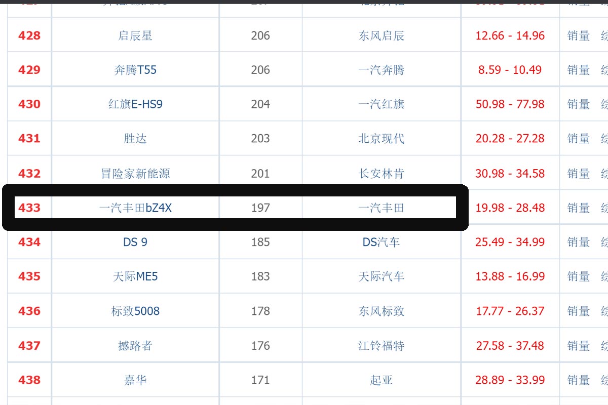 Toyota bZ4X 中国销量不及预期,10 月仅售出 197 辆新车!