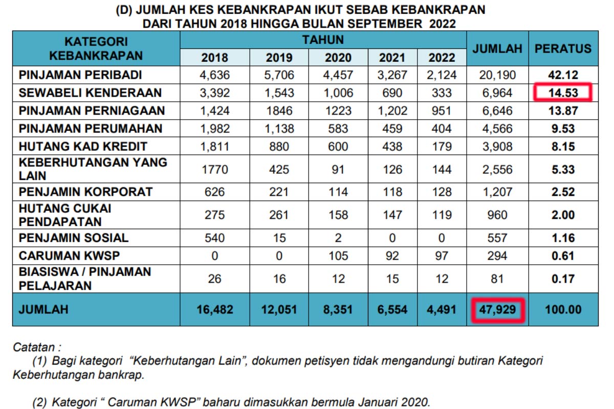 由于我国的公共交通不完善,因此很多人都会买一辆车来代步,但你有没有考虑过自身的薪水是否能够负担得起一辆车,因为根据大马报穷局 Malaysian Department of Insolvency 的数据,从 2018 年至 2022 年 9 月份期间,共有 47,929 人申请破产,平均每天有大约 27 人申请破产,而车贷就是导致大马人破产的主要因素之一。