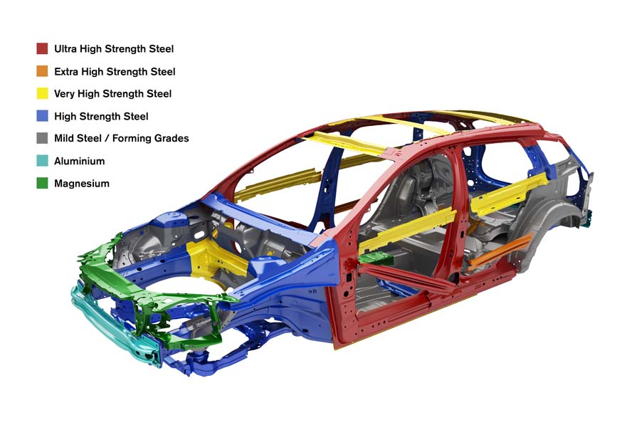 举个例子,以前的车子在 A 柱采用590 MPa的钢材,可能需要50 mm的厚度才可以达到撞击测试五星的标准,但是随着1480 MPa甚至是抗曲强度更高的钢材普及,所以要达到5星标准可能只需要35 mm厚度的架构即可,这样一来不仅可以让车子减重,安全性还可以超越以前的车款,这就是为甚么一些新车重量比起老车款更轻的主要原因