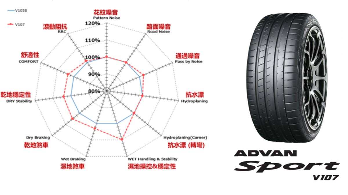 Yokohama Advan Sport V107 轮胎正式在我国发布,这款轮胎继承了上一代有着良好的性能和出色的乘坐舒适性的同时,原厂也通过几个技术来大幅提高它的操控性能,让它在维持上一代特性的同时,带来了更出色的转向稳定性和刹车表现!