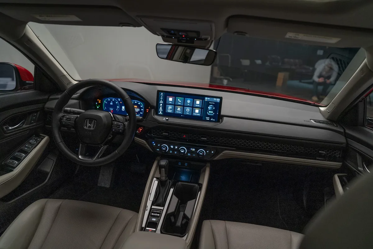 内饰方面这款车是使用了全新世代的 Honda 内装家族式设计,可以看到 10.25 寸数位化仪表,12.3 寸悬浮式中控触屏主机,支援无线 Apple CarPlay 和 Android Auto,并且内置了 Google Service 的一些应用程序,同时也支持 OTA 线上更新功能,还有像是蜂窝式的冷气出风口等细节,同时照片中可以看到中控台上都是皮革包覆,预计车内质感应该相当出色。