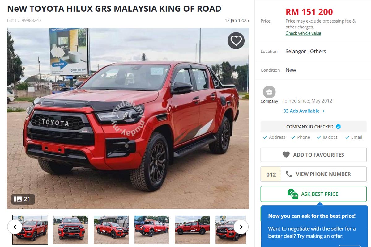 Toyota Hilux GR Sport 疑似在大马开放预定,或和泰国车型有着相同的配备,包括在外观套件和车内设计等,销售员预计售价从 RM 16X,XXX 起,但有小道消息表示售价为 RM 168,888 起,新车或将在近日发布!
