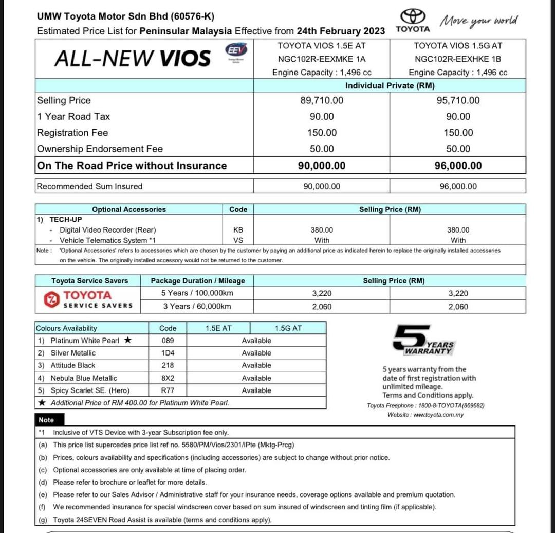 2023 Toyota Vios 正式开放预订,基于 DNGA 新平台打造,搭 1.5 Dual VVT-i 引擎配 D-CVT 变速箱,全新的外观+内装设计,全系标配 TSS,而且高配车型还有 64 色氛围灯,EPB 电子手刹,预计售价从 RM 90,000 起!