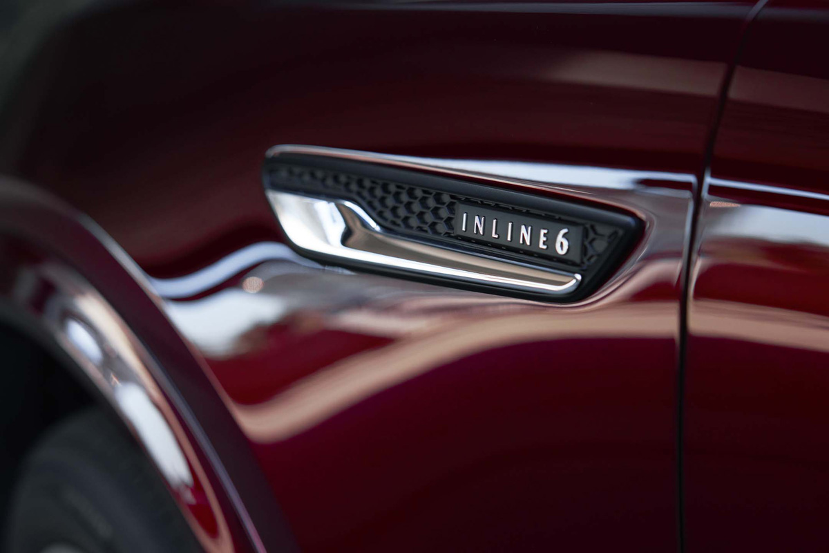 外观部分,这款车采用了最新的家族式设计语言,包括造型硕大的直瀑式水箱护罩,同时外围有着镀铬饰条点缀连接到日行灯和造型小巧的 LED 头灯组,打造出一个类贯穿式的效果,同时在保险杠两侧有进气口设计,看起来相当有性能车的感觉,而且下方也有镀铬饰条,整个前脸给人一种高贵的气息,而它的车侧线条非常饱满,在窗框和侧裙部分有镀铬饰条,同时 D 柱之后有大倾角的设计,加上大尺寸的多辐式轮圈,很好地诠释了原厂基因里的运动风,至于车尾的尾灯有和头灯相呼应的设计,同时下方有双出排气管设计,而且车尾也进一步强调了这款车的大。