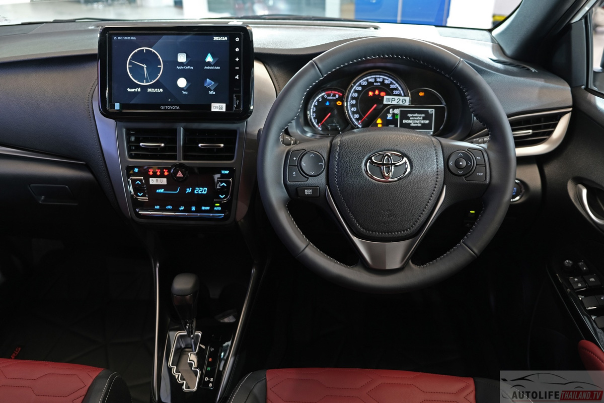 来到内饰的设计布局基本上没有什么改动,不过泰规的顶配车型有着一个红黑双色的皮革座椅,看起来更 Sporty,而我们可以看到它的仪表是 2 个传统的指针式仪表配上一个 4.2 寸的显示屏,另外还有 9 寸中控触屏主机,支援 Android Auto 和 Apple CarPlay,而下方的冷气控制面板则没有改变,其余配置像是全车系最多 6 Speakers,60:40 椅背分离倾倒和 360° 全景影像都可以在这款车上看到。