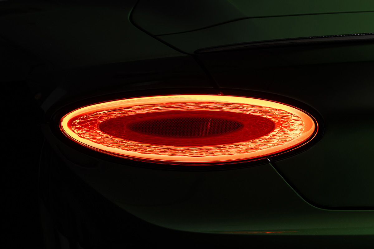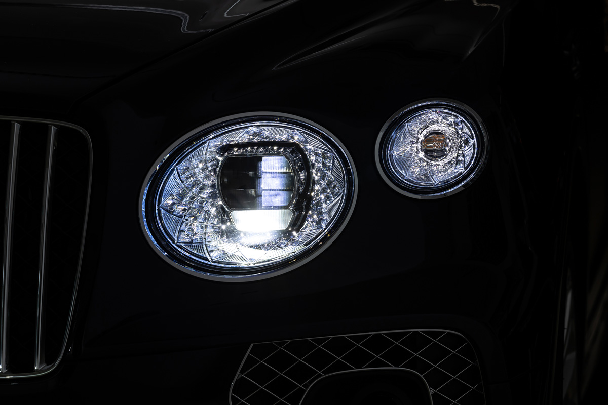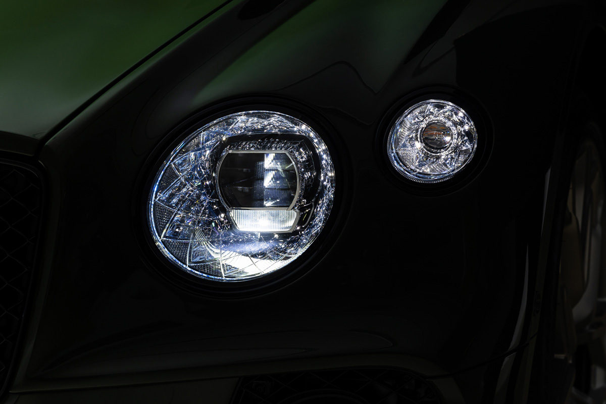 外观方面它同样采用了家族式的网状型水箱护罩,而两侧便是拥有独立 LED 光源的矩阵式头灯组,灯腔内的设计非常精致,就像钻石一样,而且还会放射出不一样的光亮,搭配上照片中绿色的车漆,非常吸引人们的目光。至于车尾部分,它采用了椭圆形的 LED 尾灯组以及内置式的四出椭圆形排气尾口,另外原厂还提供最大 22 寸的轮圈可供选配,整体造型非常奢华之余还多了一丝运动气息。