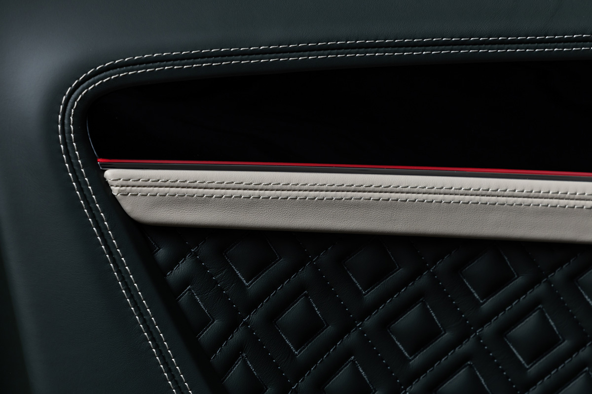 至于在内饰地部分,一打开车门你就可以看见很多 S 的徽章,彰显出它和其他的 Continental GT 是不一样的,但是质感出色的内饰却是一脉相承的,原厂通过使用多种不同颜色的皮革混搭组成质感超好的内饰,同时它还有全液晶仪表,大尺寸可翻转的中控触屏主机,并且可以选配高达 2,200W 功率的 Naim 高级音响,加上氛围灯以及出色的内饰细节,坐进车内可说是满满的奢华感。