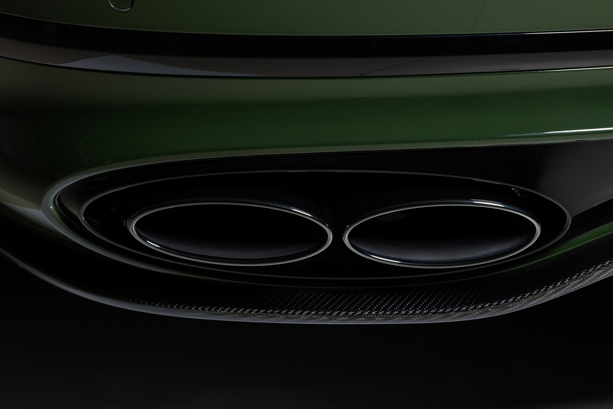 在动力的部分,这款车搭载的是和刚刚的 Bentagya EWB Azure 同款的 4.0L V8 Twin Turbo 引擎,最大马力表现 542 Hp,峰值扭力表现 770 Nm,0-100 km/h 加速只需 4.0 秒,有着 318 km/h 的极速,不过不同的是它配备了 ZF 8 速双离合器变速箱(Bentayga 为 8AT),而且为了应付这辆车强大的性能表现,原厂为它配备了带有 S 徽章的前 10 活塞,后 4 活塞的高性能刹车卡钳,加上前 420 mm,后 380 mm 的刹车碟盘,可以带来出色的刹车性能,确保你跑得快的同时也能稳稳地停下车子。