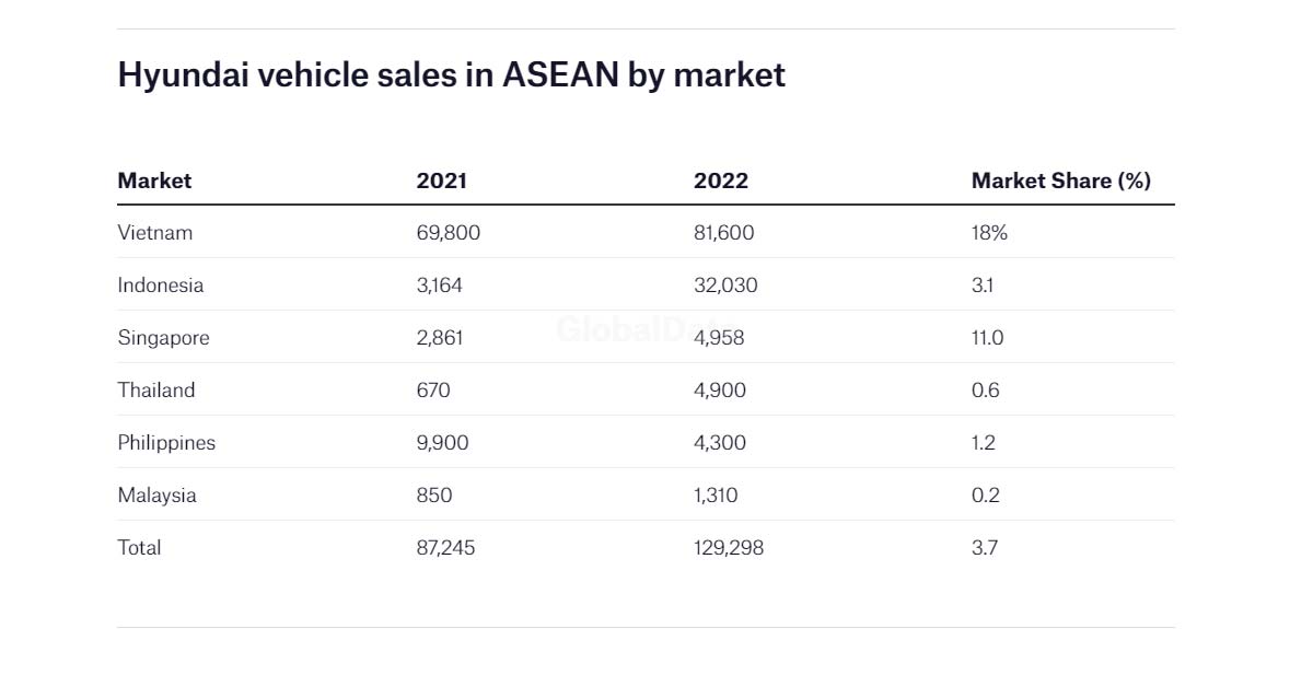 参考他们公布的数据,去年这家韩国车企在东南亚的 6 个主要市场,也就是越南,印尼,新加坡,泰国,菲律宾和马来西亚的销售成绩,那这家韩国车企 2022 年在这主要的 6 大市场的总销量为 129,098 辆新车,占据了所有市场总销量约 3.7% 的市场份额,对比起 2021 年一共售出 87,245 辆新车的成绩,有着明显增长。