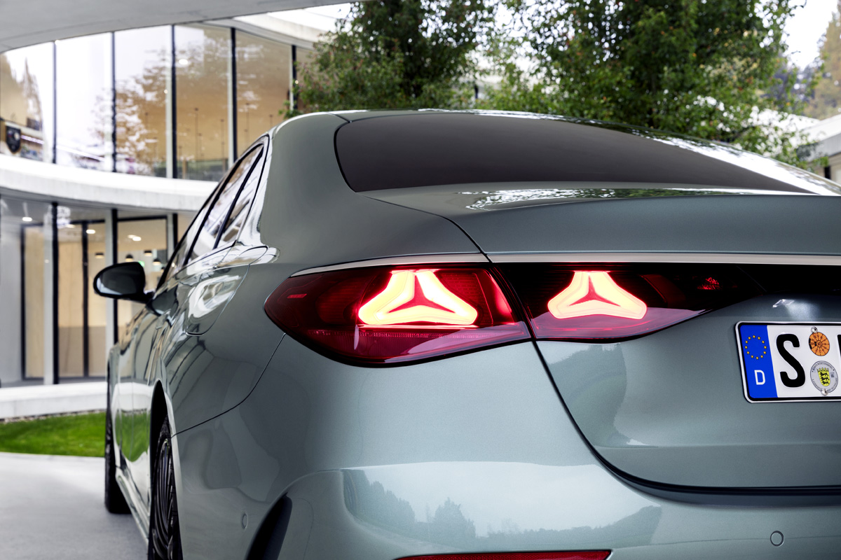 来到车侧由于它使用了隐藏式门把手设计,因此车侧线条非常简洁流畅,加上 C 柱之后直接下滑的车顶溜背设计,造就了它很高颜值和运动的外观,同时让它只有 0.23 cd 的低风阻系数,而且这款车采用了多幅式的轮圈,让它看起来更为优雅大气,至于在车尾的设计也很激进,因为它的尾灯造型相当特别,里面内置了两个三芒星三角形的灯组,让你一开出去别人就知道你是 Mercedes-Benz,加上加上下面双边双出镀铬排气尾管还有后扰流器设计,整个造型相当运动,而它的车身尺码也比起现款车型稍微加大,详细数据如下: