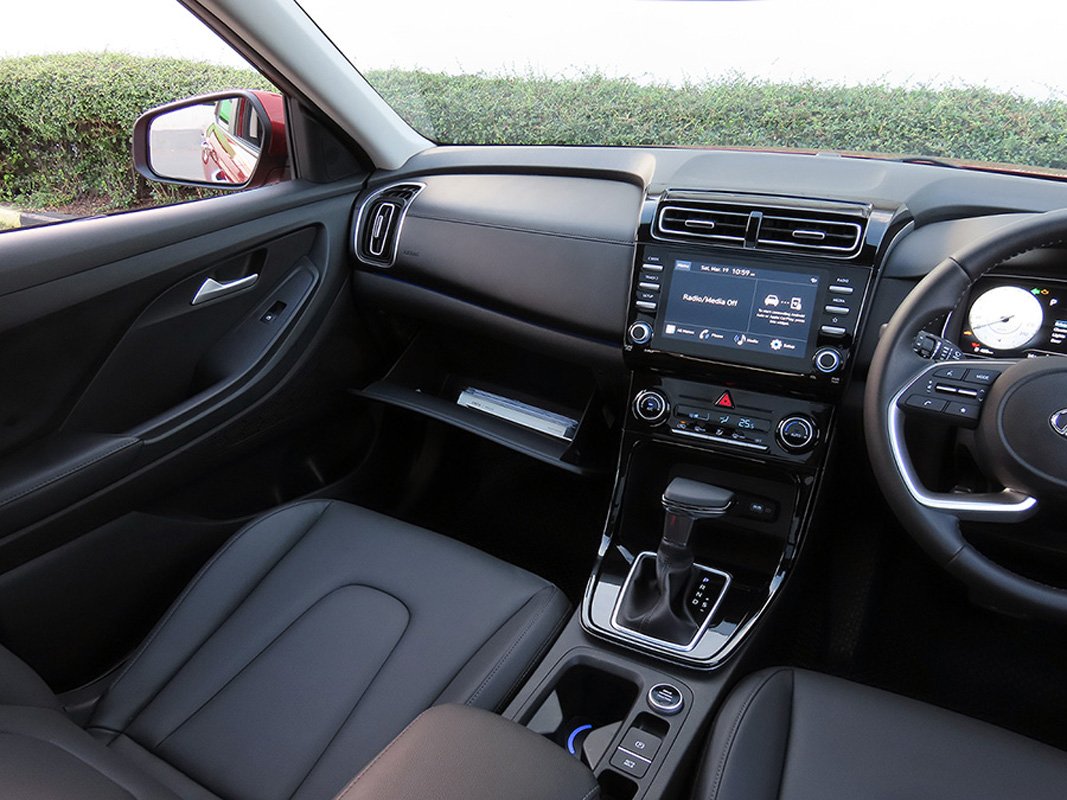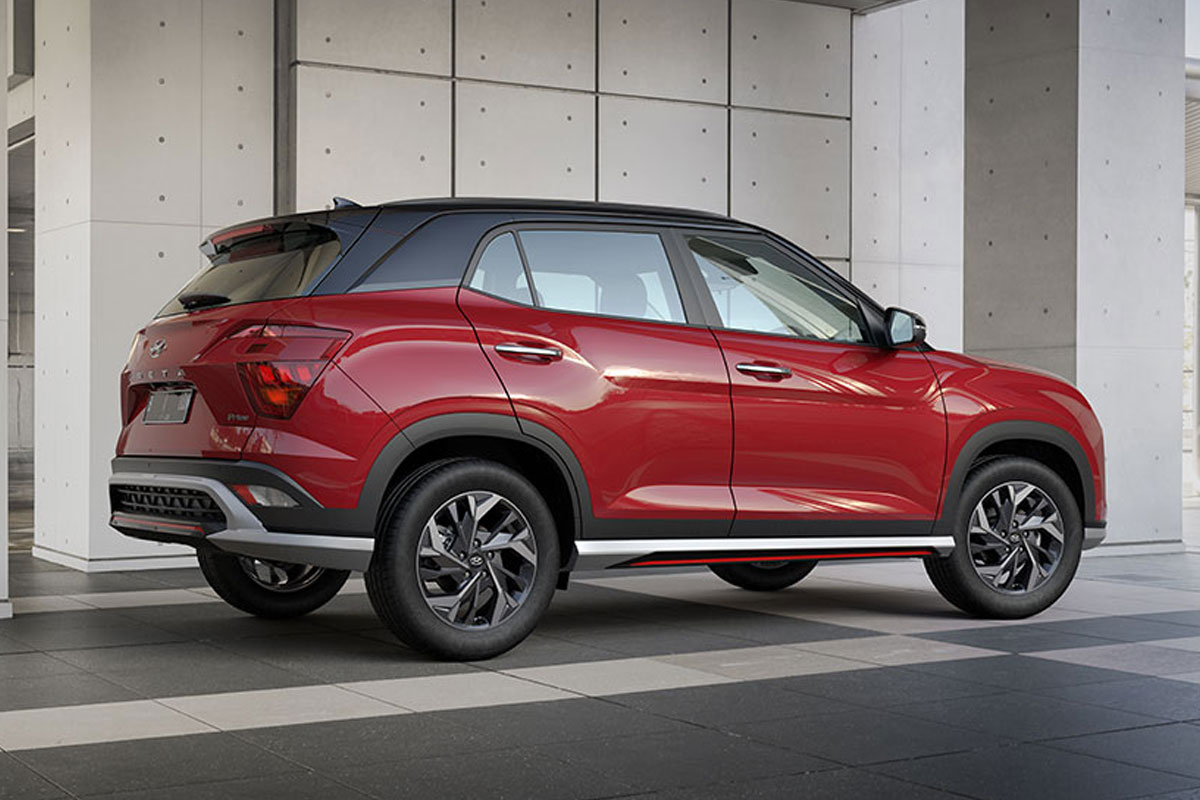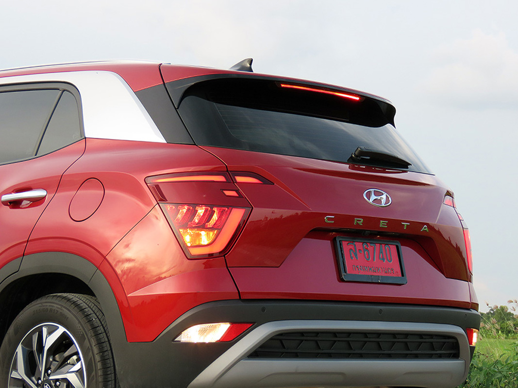 在外观部分,它采用了家族式设计语言,有着几乎占据整个前脸,造型硕大的的水箱护罩,而它的头灯组被分为了两边,其中部分巧妙地融合在了水箱护罩两侧,另外在下方也有灯组,至于车侧则有黑色的 A 柱和银色的饰板组成的 Dual Tone 双色车身设计,而车尾则是富有层次感的设计,除了传统的 Logo 外,还有车名 CRETA 的字样表明它的身份,而且它的尾灯设计设计也极为夸张,通过不对称的形状形成了一种异形的美感,辨识度不输给贯穿式尾灯。