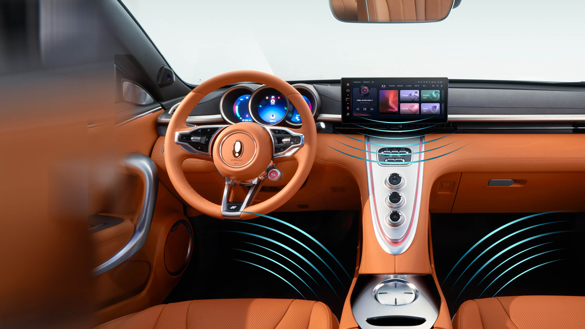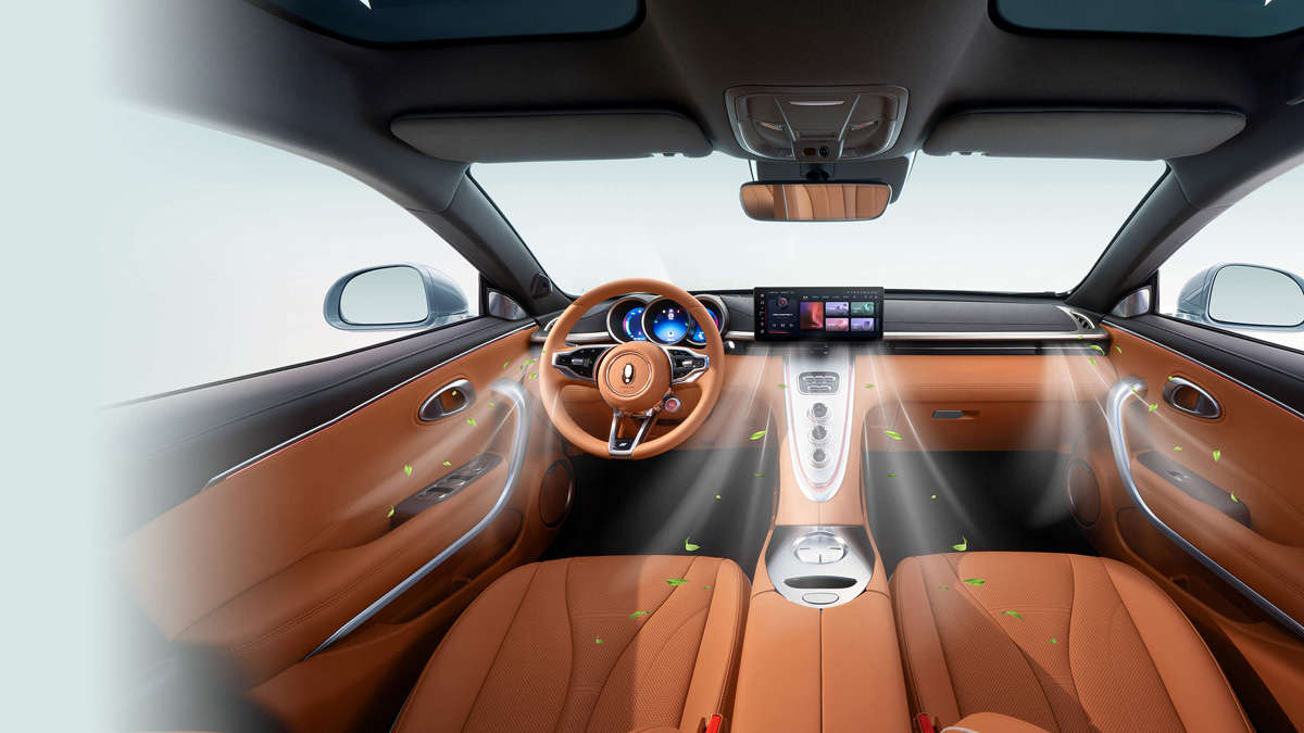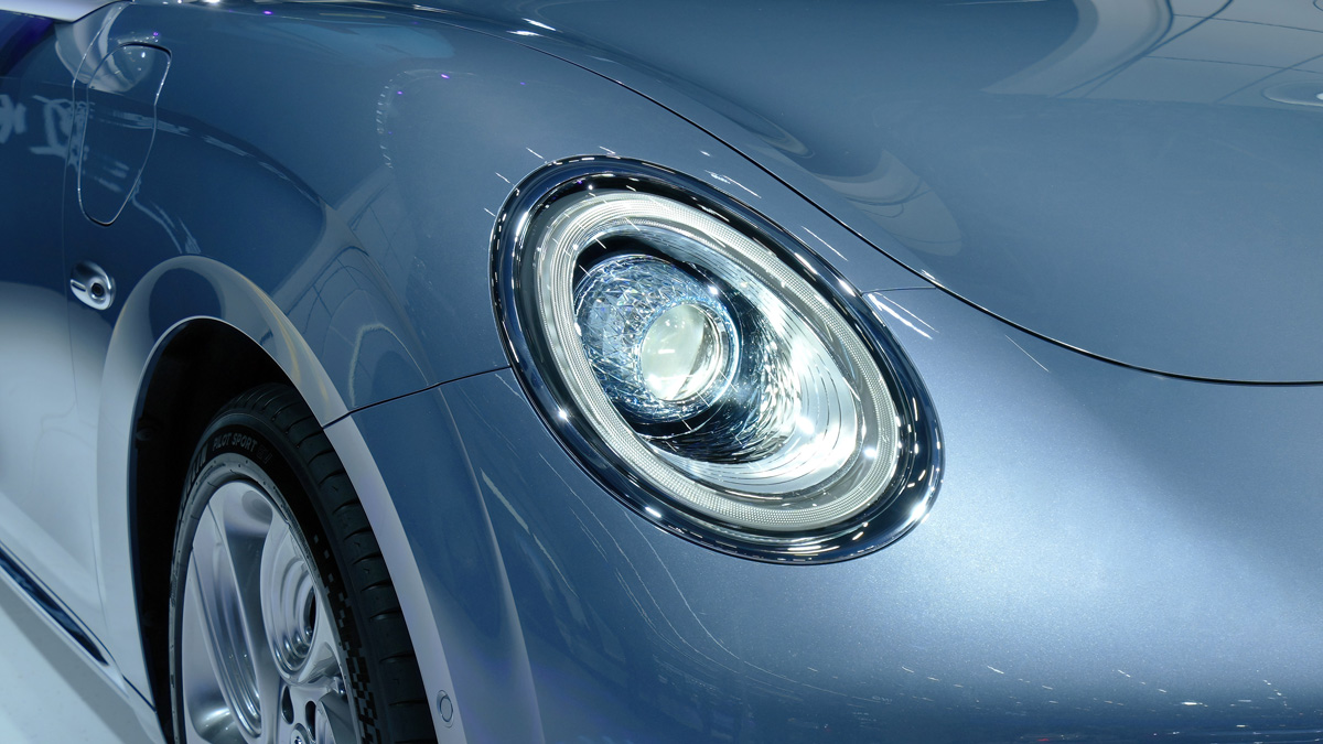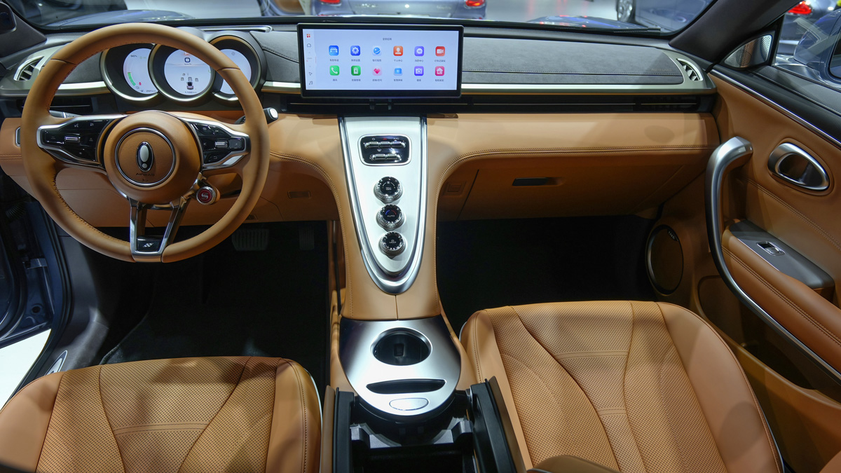 在外观的部分,这款车和好猫一样,都是使用了较为圆润的线条设计,包括了椭圆形的头灯组,保险杠设计等等,加以一点镀铬饰条点缀,让它的前脸看起来高贵又优雅,至于车侧则可以看到有隐藏式门把手,另外它还有跑车同款无框车门,还配备了造型独特的 19 寸的猫爪仿生镀铬轮圈和可升降尾翼,它会在 70 km/h 时自动升起,可以提供多 20 kg 的下压力,让它看起来更运动化,至于车尾则是大溜背的设计,配上和车头相呼应的椭圆形尾灯,整个设计就是 Coupe 轿跑车的感觉,而它的车漆颜色也很少女心,原厂提供了碧玺灰、烟紫晶、白璞玉和冰粉钻共 4 种车漆颜色可选。