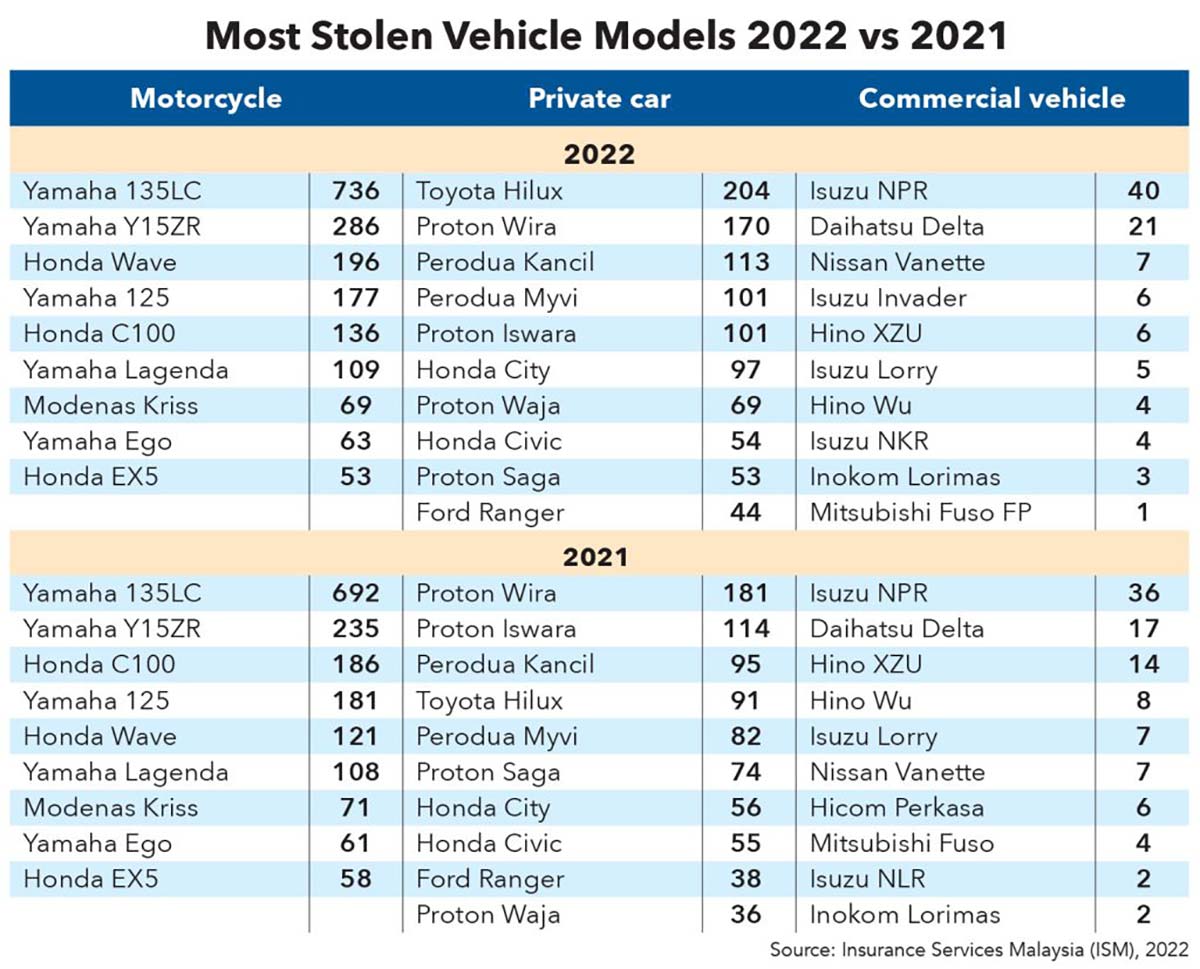 Toyota Hilux 去年取代了 Proton Wira 连续 11 年成为了全马最多被偷的车款的记录,以去年 204 辆被偷的记录,一下子从 2021 年最多被偷的非国产车,晋升成为 2022 年最多被偷的车款,各位 Hilux 车主真的要小心了。