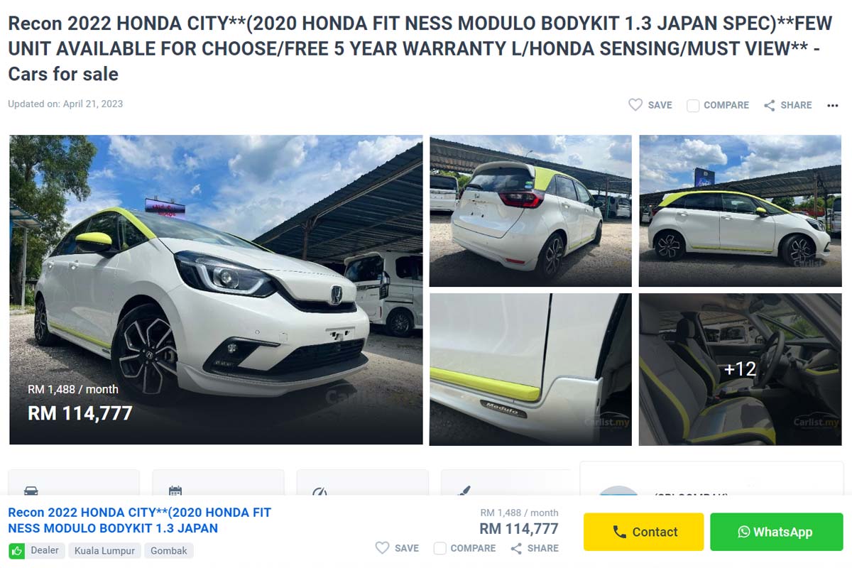 根据我们从网络上找到的资料,目前已经有进口车商把 Fit 这款车导入我国贩售,它是从日本进口到我国,售价都是 RM 114,777,只不过目前小编找到的车源仅有 1.3L i-VTEC 自然进气引擎版本,至于国外热卖的 1.5L e:HEV 混合动力引擎版本则找不到相关车源,如果大家想要可能就要找进口车商特地从国外订购了。