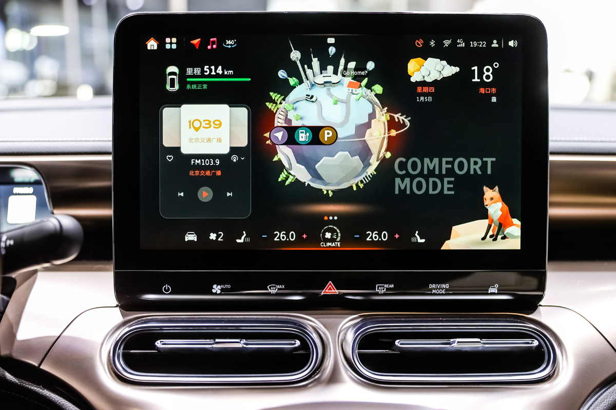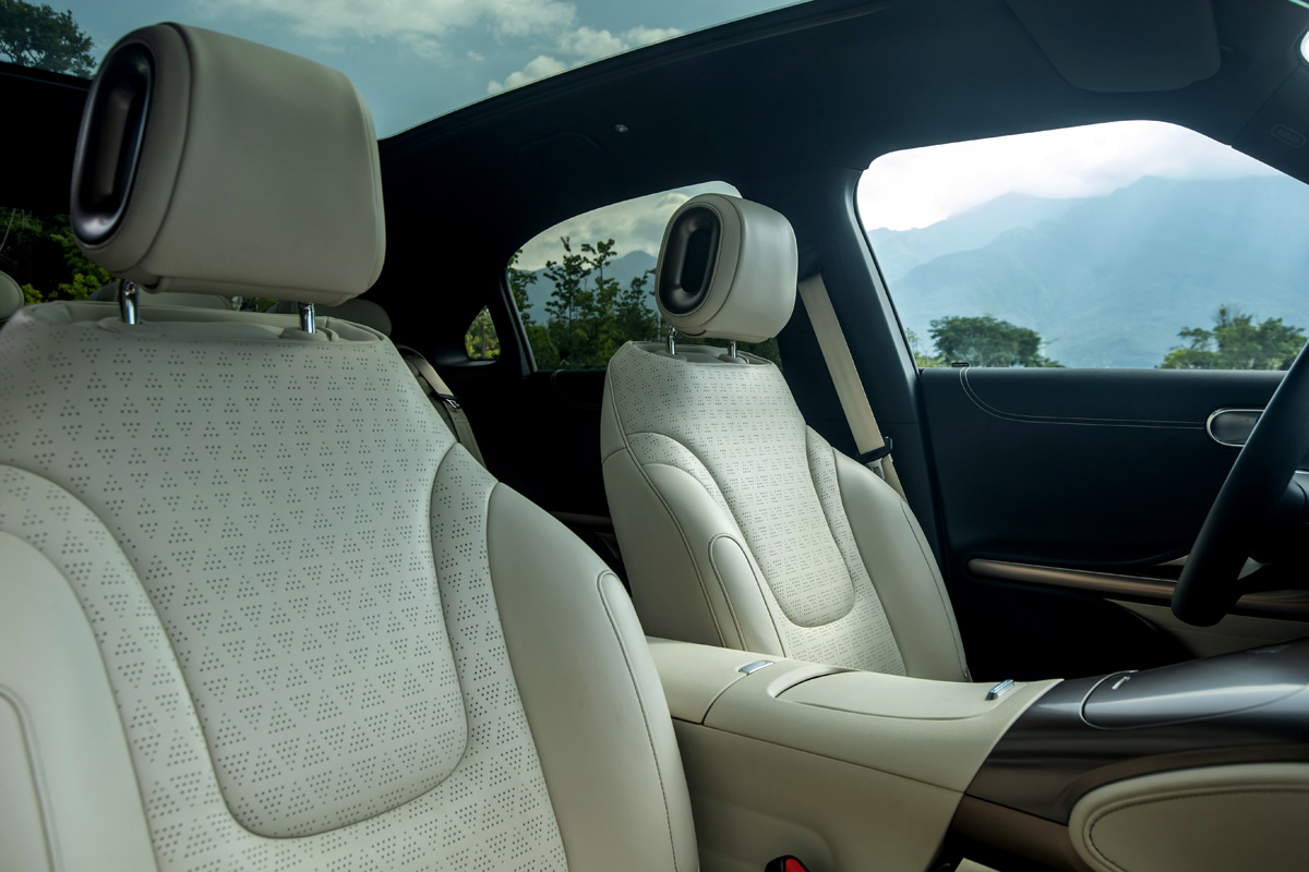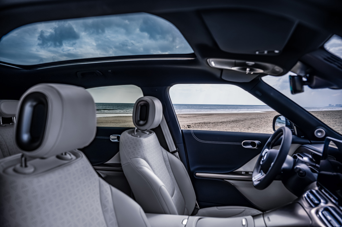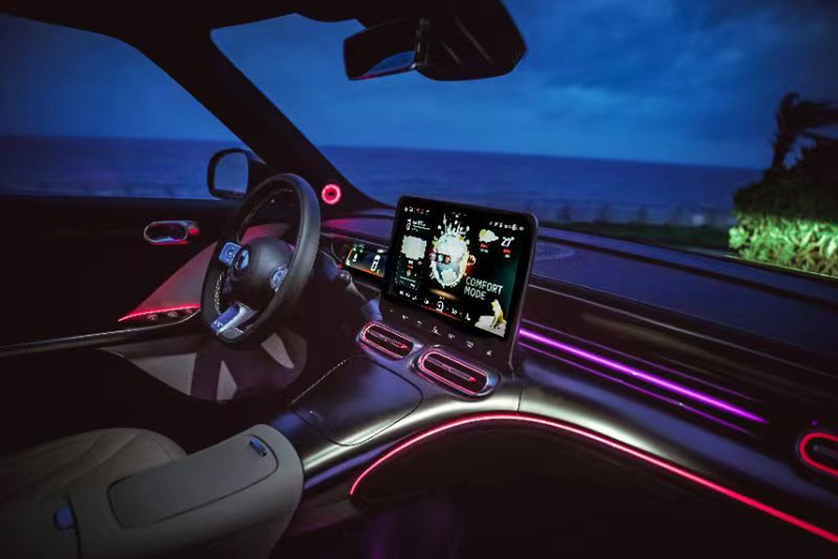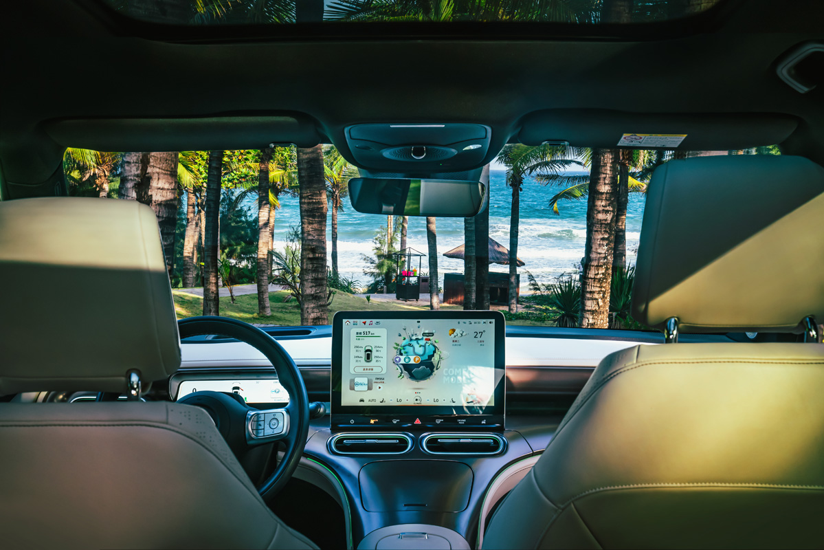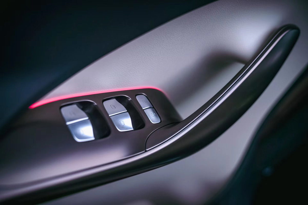 在内饰上这款车虽然采用了极简风格设计,但是整体维持了高质感的设计可以看到整个车内其实没有太多的按键控制,大多数功能被集成在 12.8 寸的中控触屏主机内,并且它内置了 Snapdragon 8155 车载芯片,加上 12 GB RAM + 128 GB ROM 可以确保你的流畅使用,另外它还有 9.2 寸全液晶仪表、10 寸彩色抬头显示器和 Beats 高级音响等等的配备,而且它还和 Mercedes-Benz 一样使用怀挡的换挡方式,并且配备了炫目的 64 色氛围灯,相信可以吸引不少年轻人。