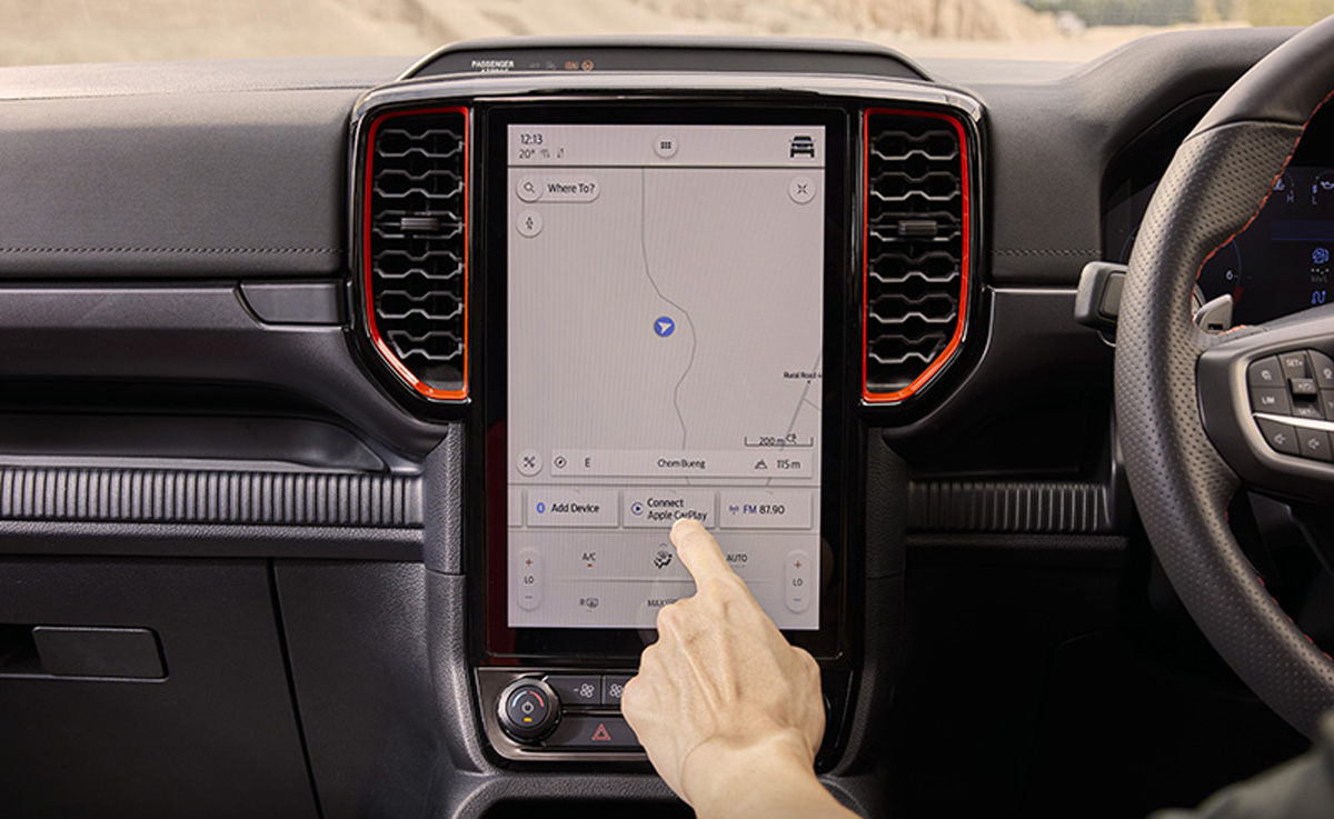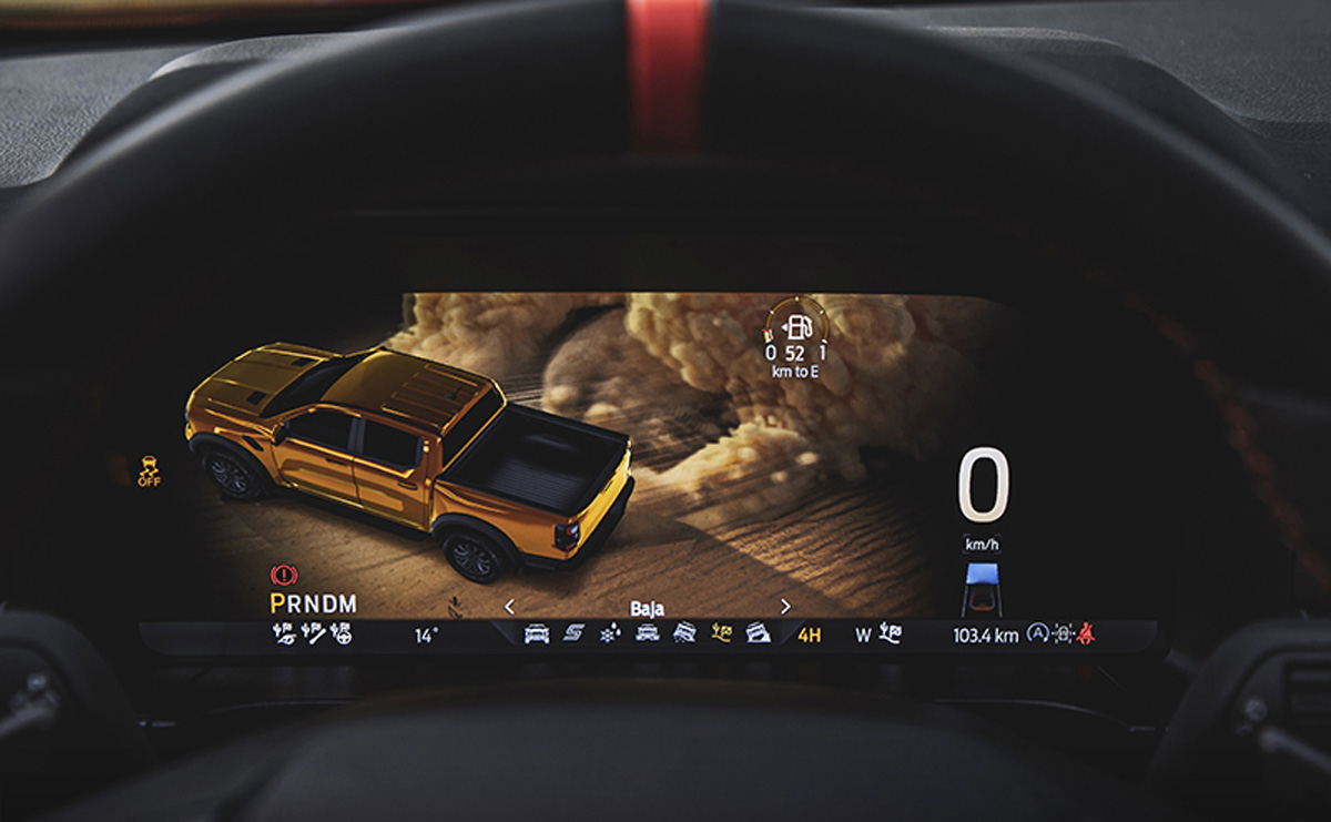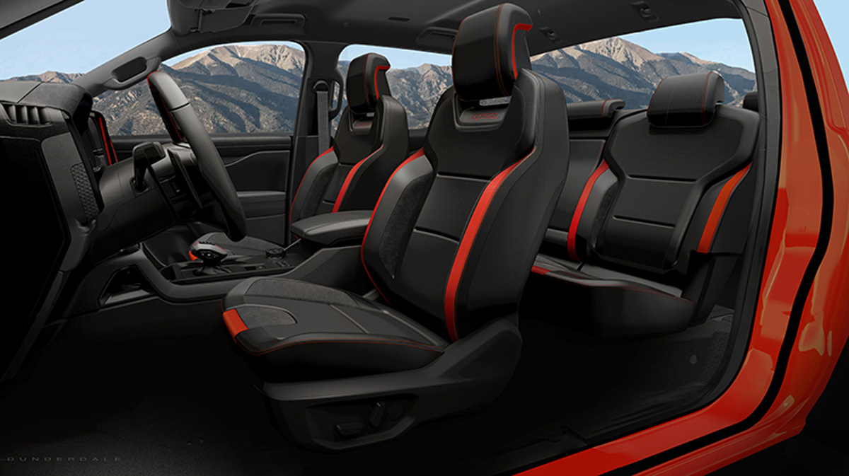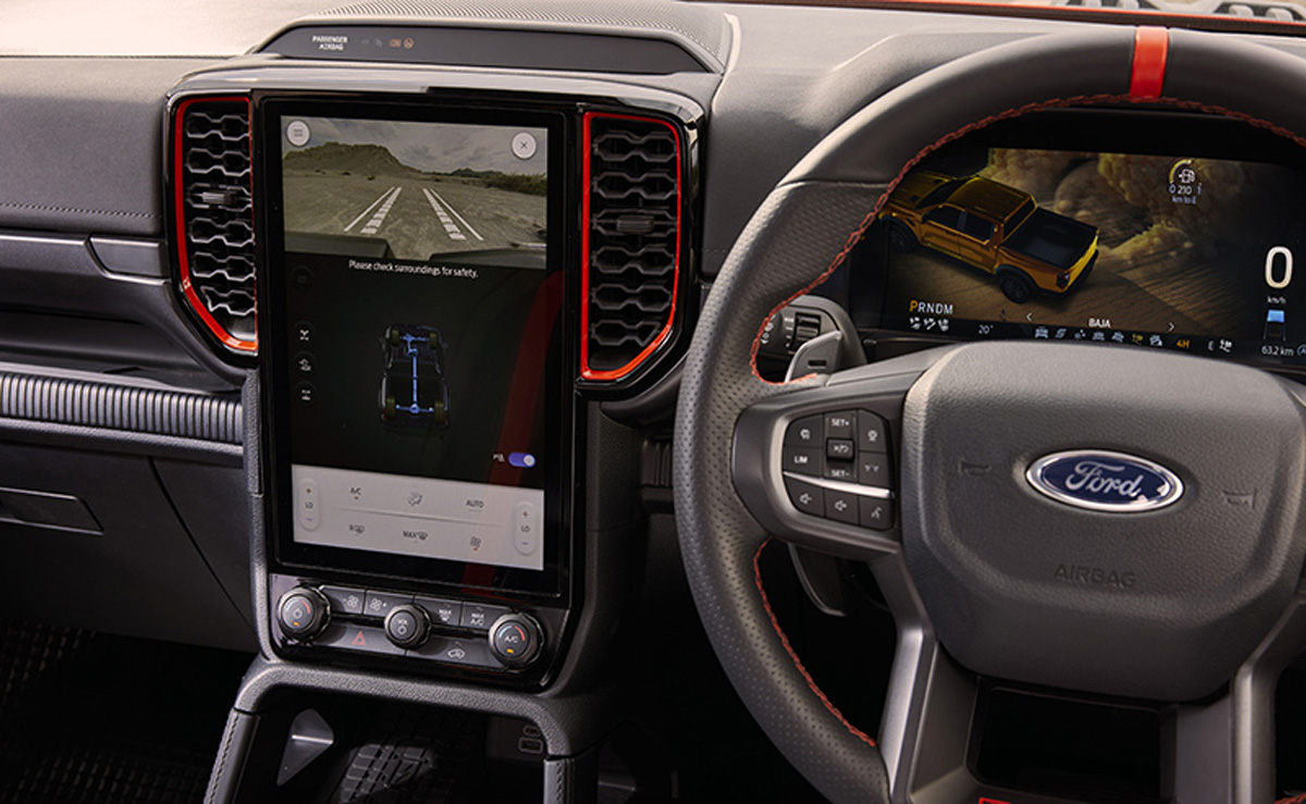 内装的部分基本的设计和 Ranger 是一样的,只是在一些细节上面进行了加强,其中就包括中控台、方向盘以及座椅的皮革有着不同颜色的车风险凸显运动感,除此之外新车在科技的部分也是非常的强,全数位化仪表具备了高清晰度以及多资讯显示,而在中控台中有着一个尺码打到12寸的直立触屏主机,你可以通过这里调整车辆的空调系统,驾驶模式等等,另外这荧幕也支援 Android Auto 以及 Apple Carplay ,而且是无线的。