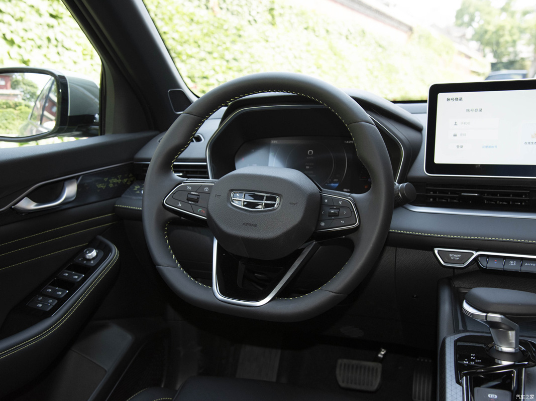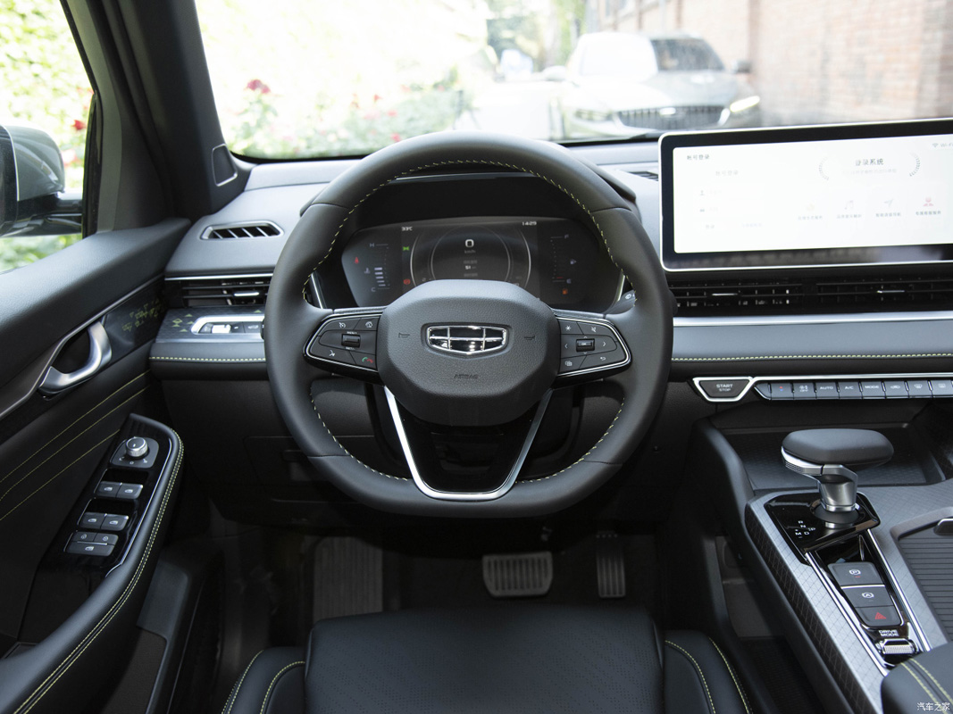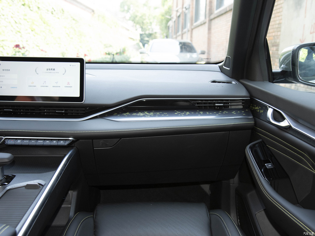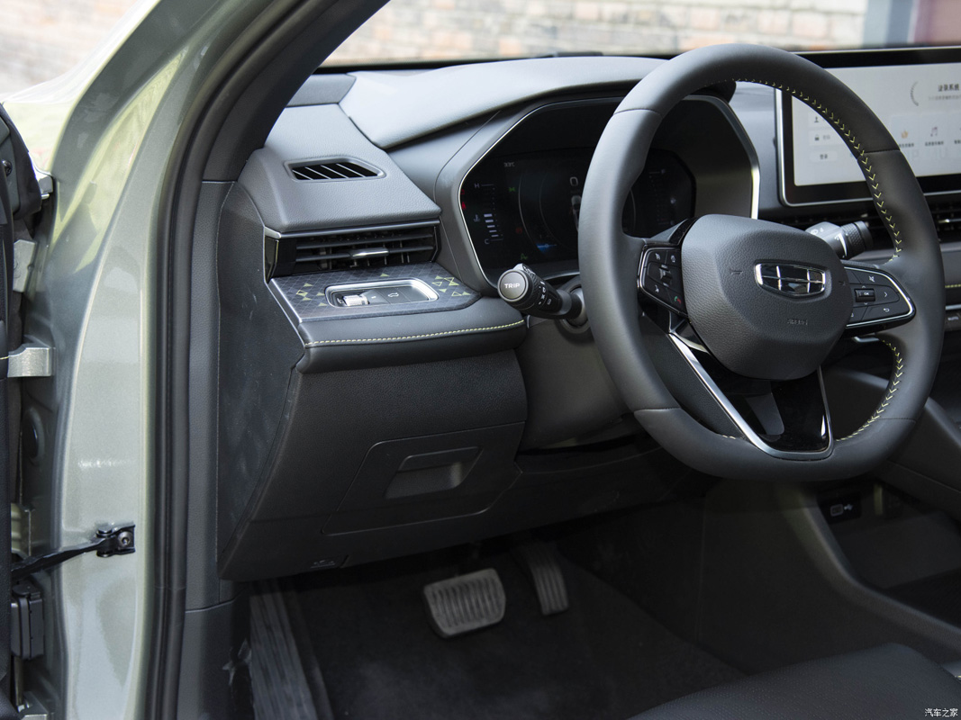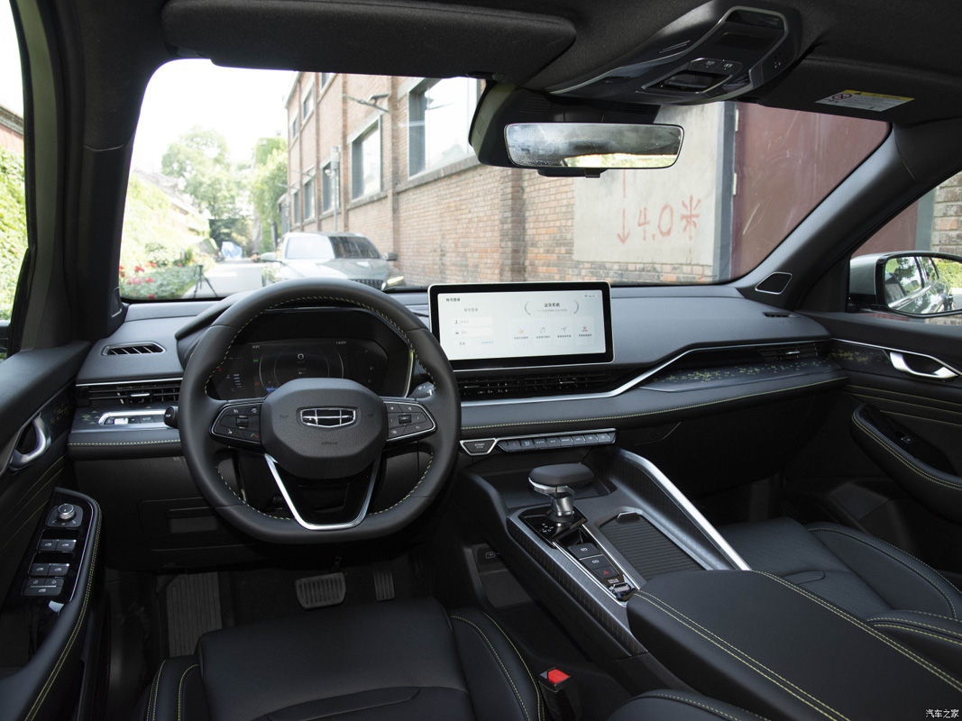 来到内饰的部分,这款车并没有因为是入门车型而有所减配,它还是维持了高质感的表现,原厂在内饰中使用了名为幻夜墨染的全黑内装设计,并且在车内你都可以看到软质塑胶的内装铺陈,另外 7/12.3 寸的数位化仪表和 12.3 寸的悬浮式中控触屏主机也有获得保留,内置了银河 OS 系统,支援 OTA 在线升级功能,整体给到你高质感又有科技感的内饰氛围。