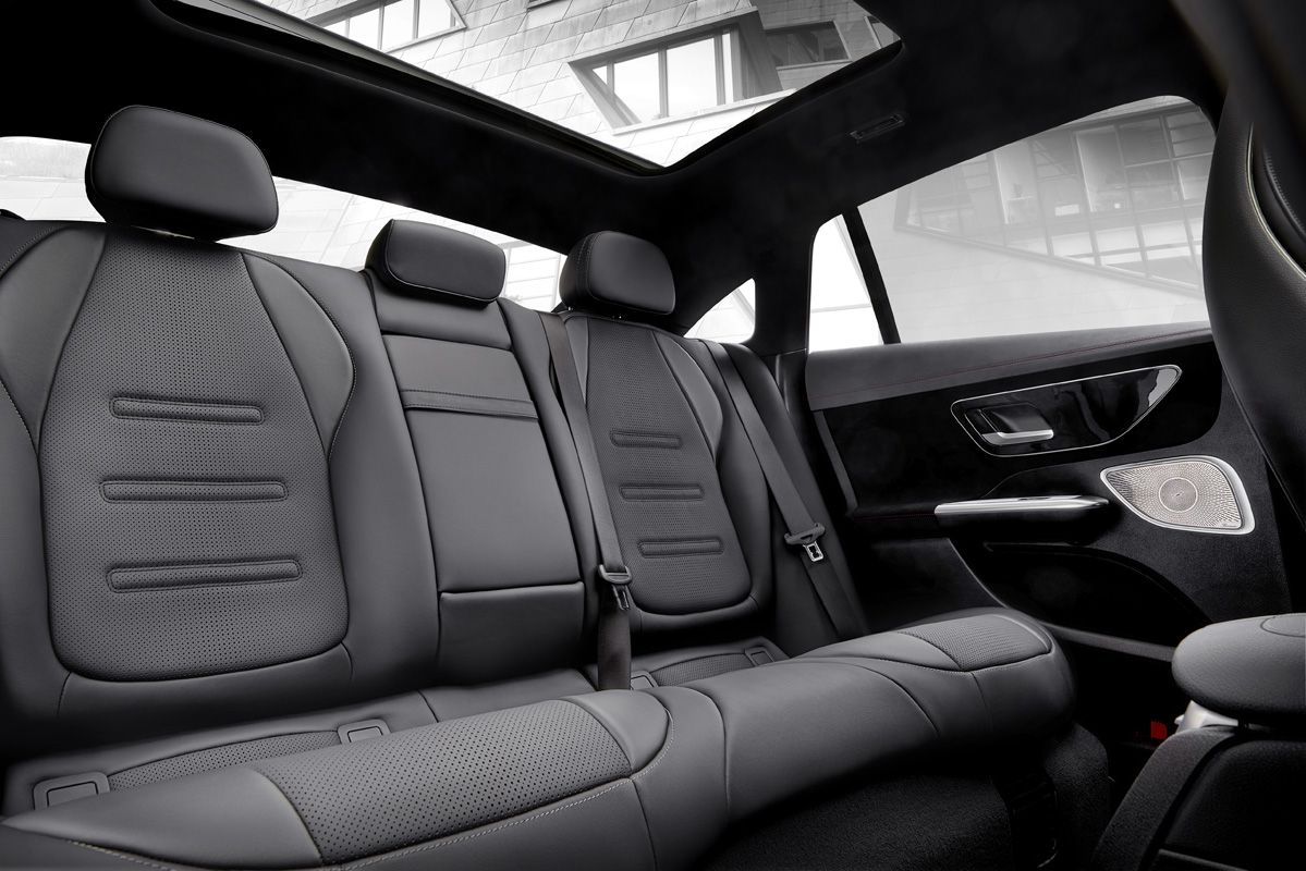 而在内装它就和 EQE 53 其实是大同小异的,都是有着十足的运动与科技感,可以看到是有着 MBUX Hyperscreen 三联屏组成的全液晶仪表、中控触屏主机和副驾驶娱乐主机,而且它还有着最新的 AMG 双层式方向盘,并且带有经典的 Drive Select 旋钮,同时还有 AMG 运动皮革座椅,以及由 Alcantara + Carbon Fiber 碳钎维拼搭而成的内装饰板和材质,整个内装给到你十足的战斗气息。